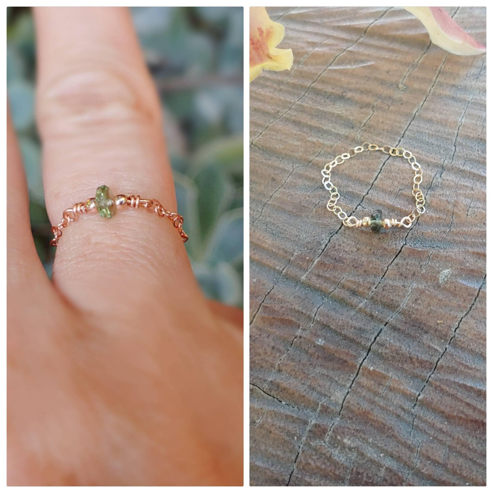 Dainty genuine moldavite chain ring. Moldavite chain ring. Minimalist ring. Gold moldavite ring. Silver moldavite. Rose gold moldavite ring