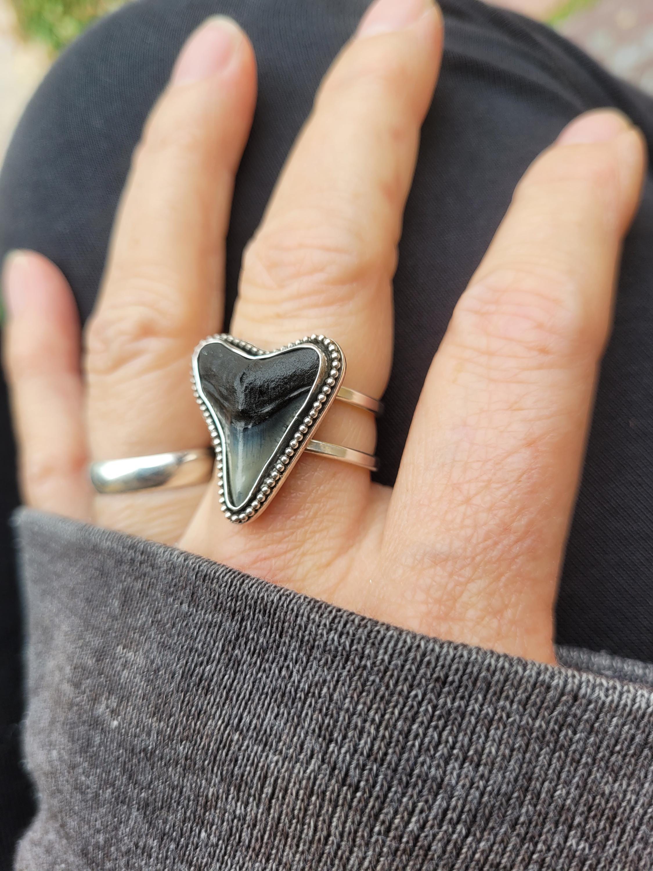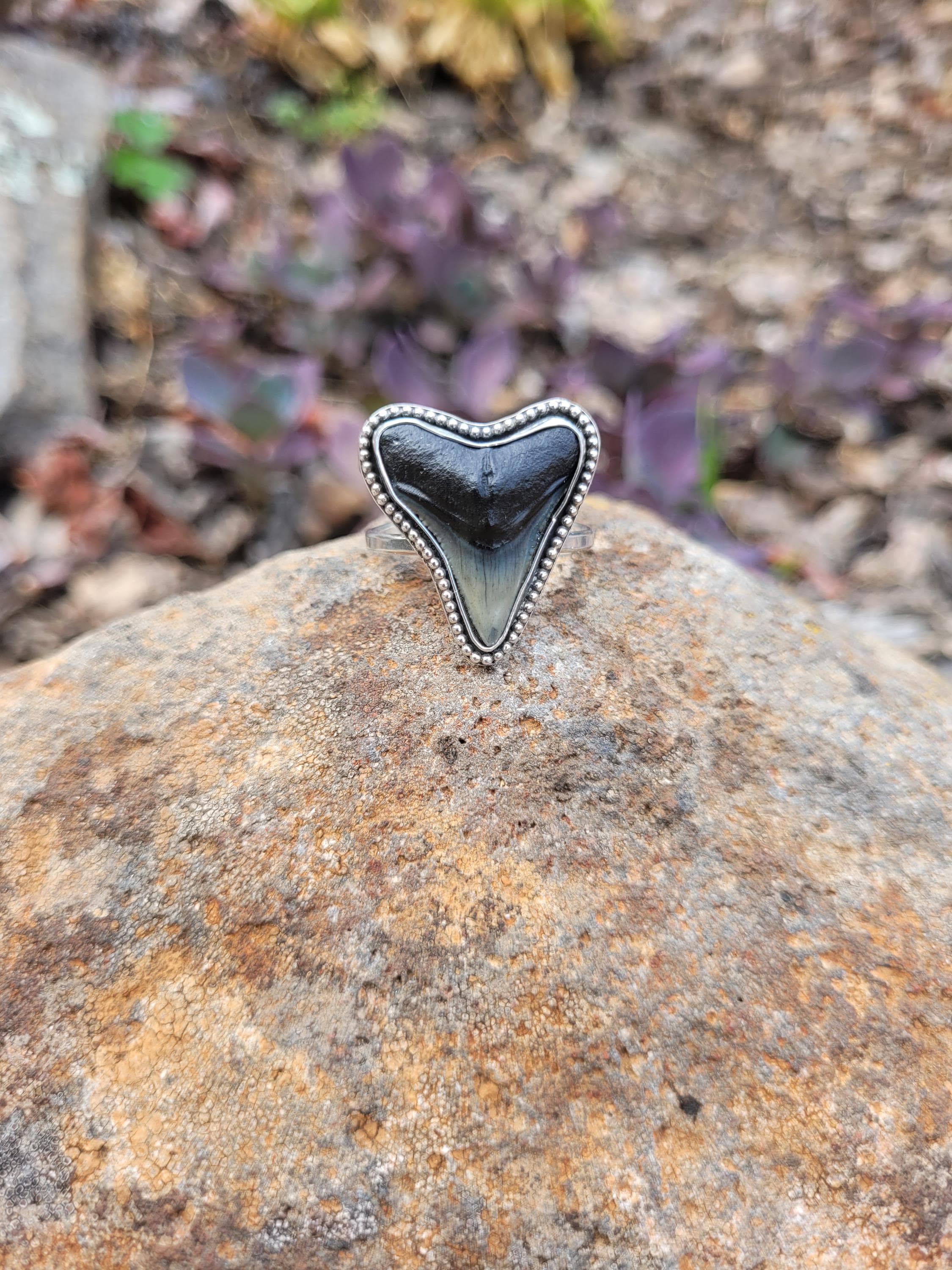 Ethically sourced shark tooth that has been found on the ocean floor.