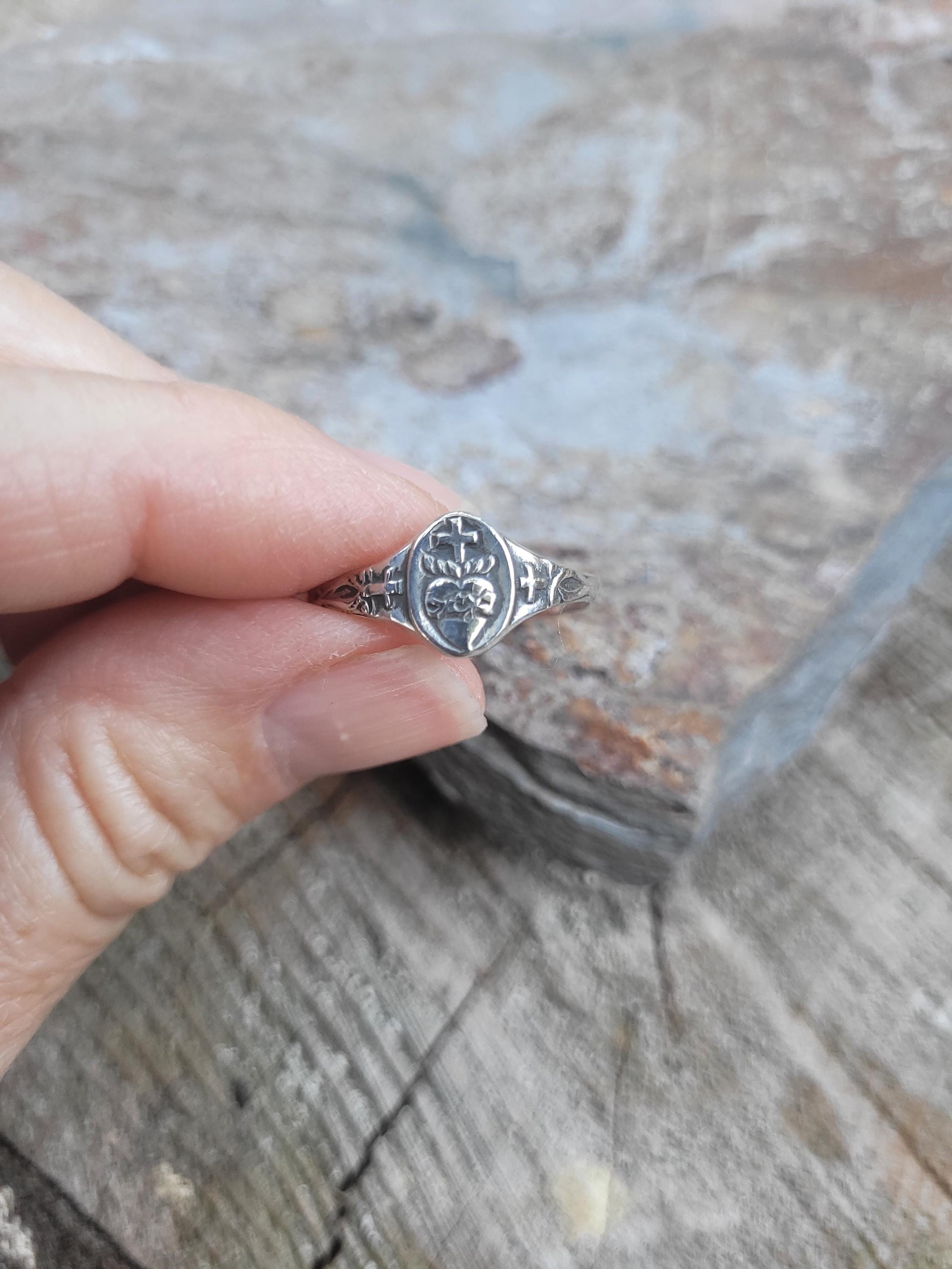 Hand made in sterling silver. Perfectly imperfect!! A little on the rustic side this little beauty doesnt disappoint!