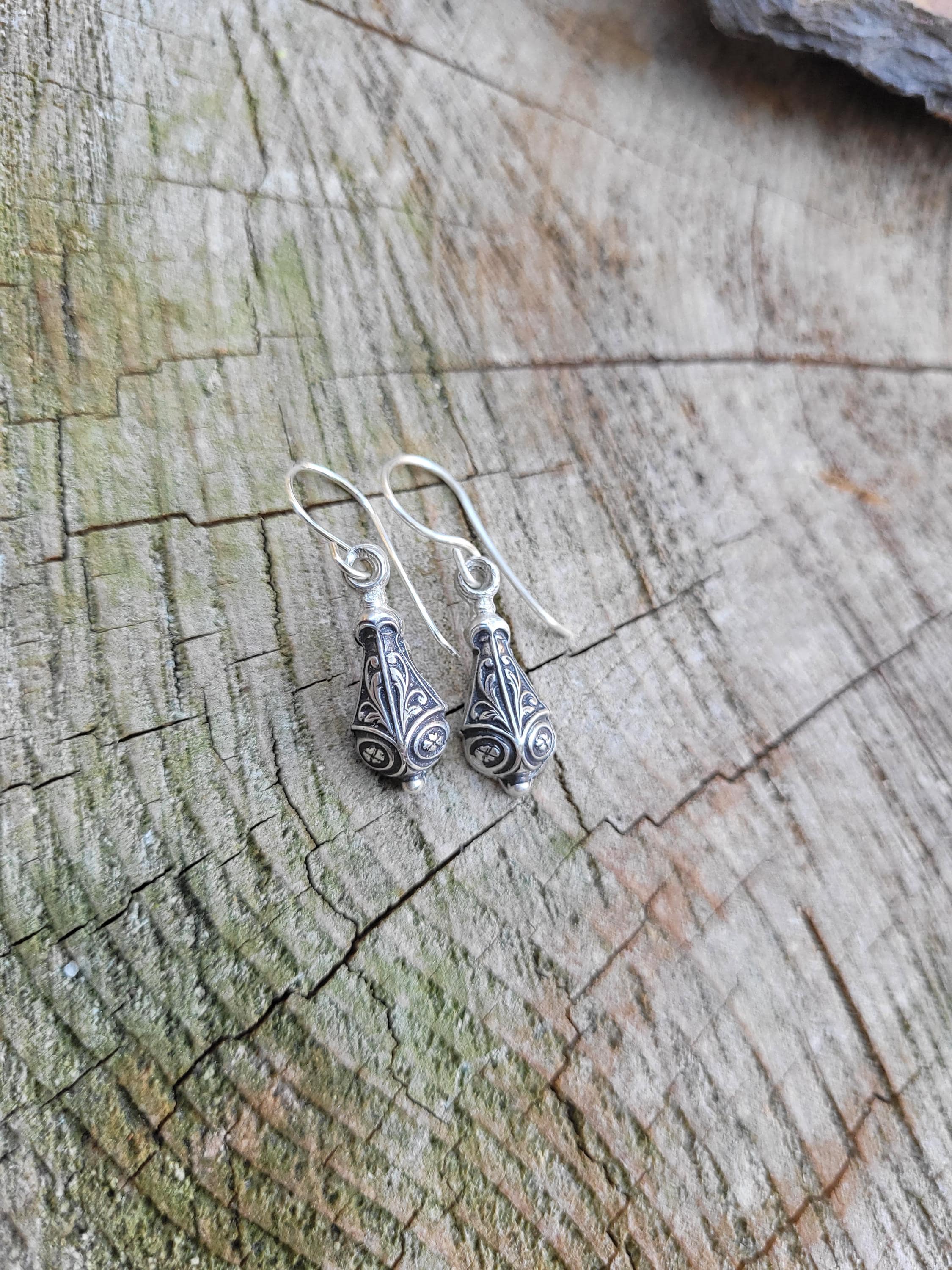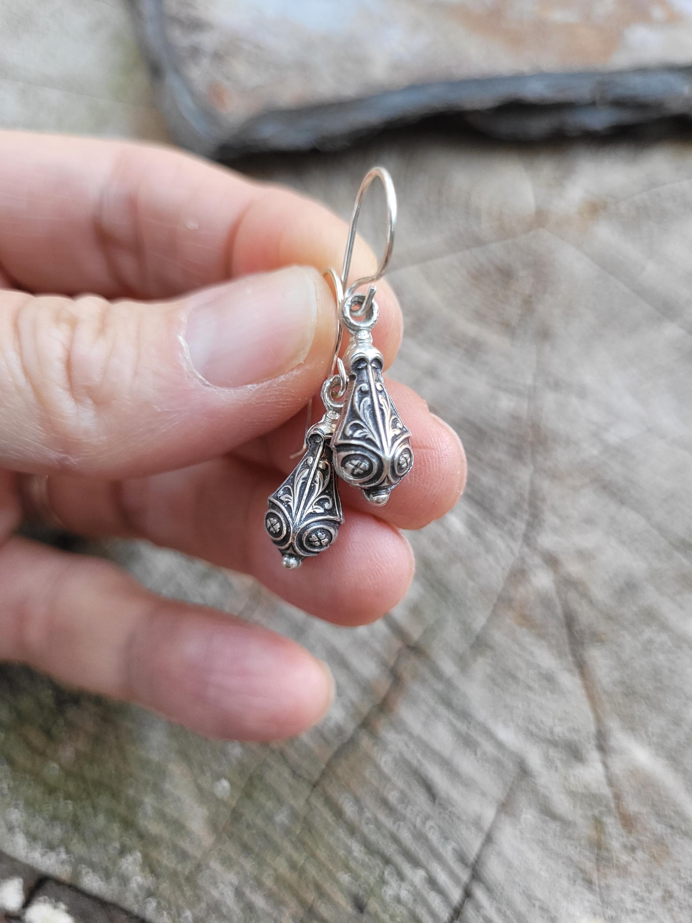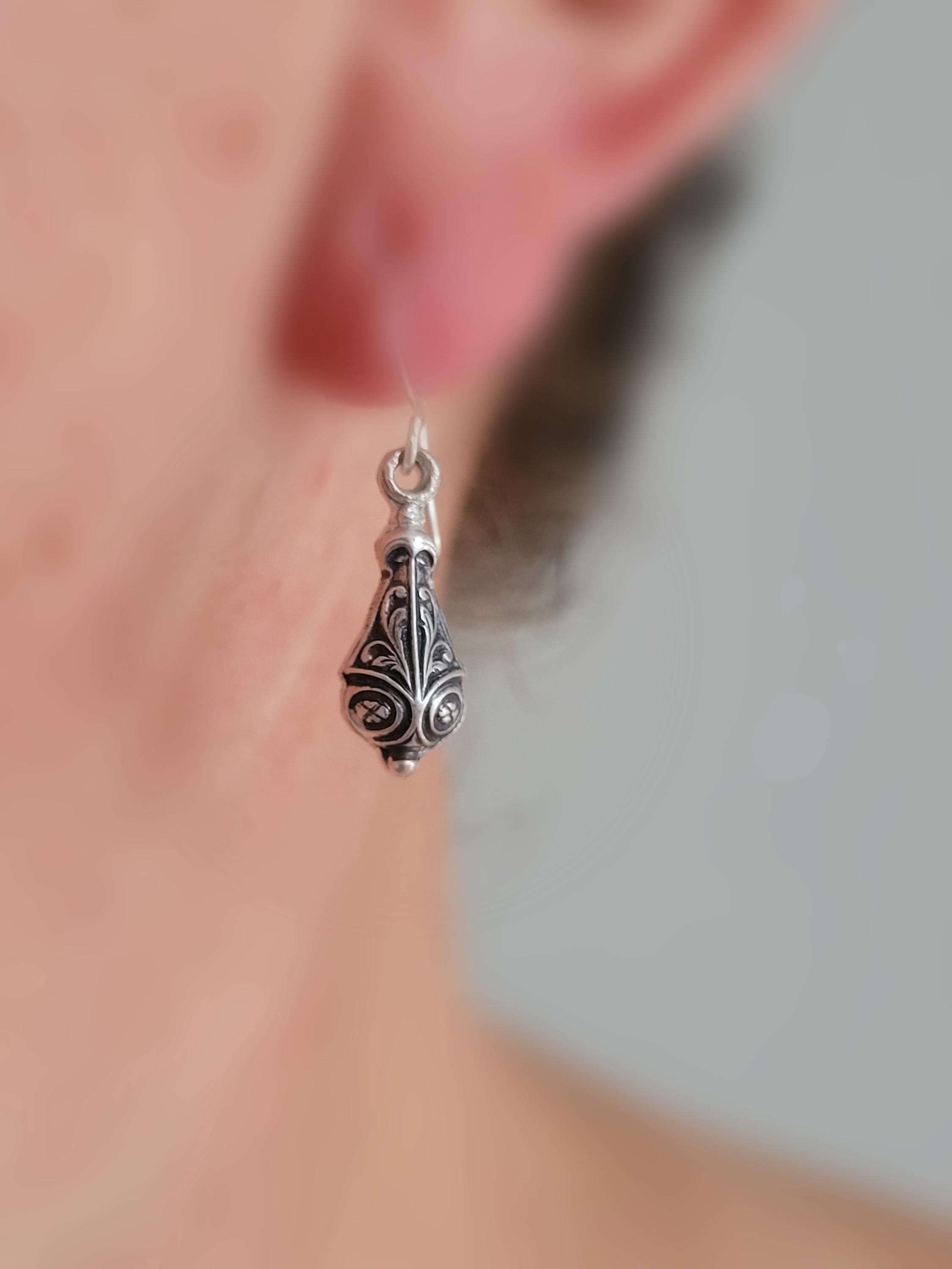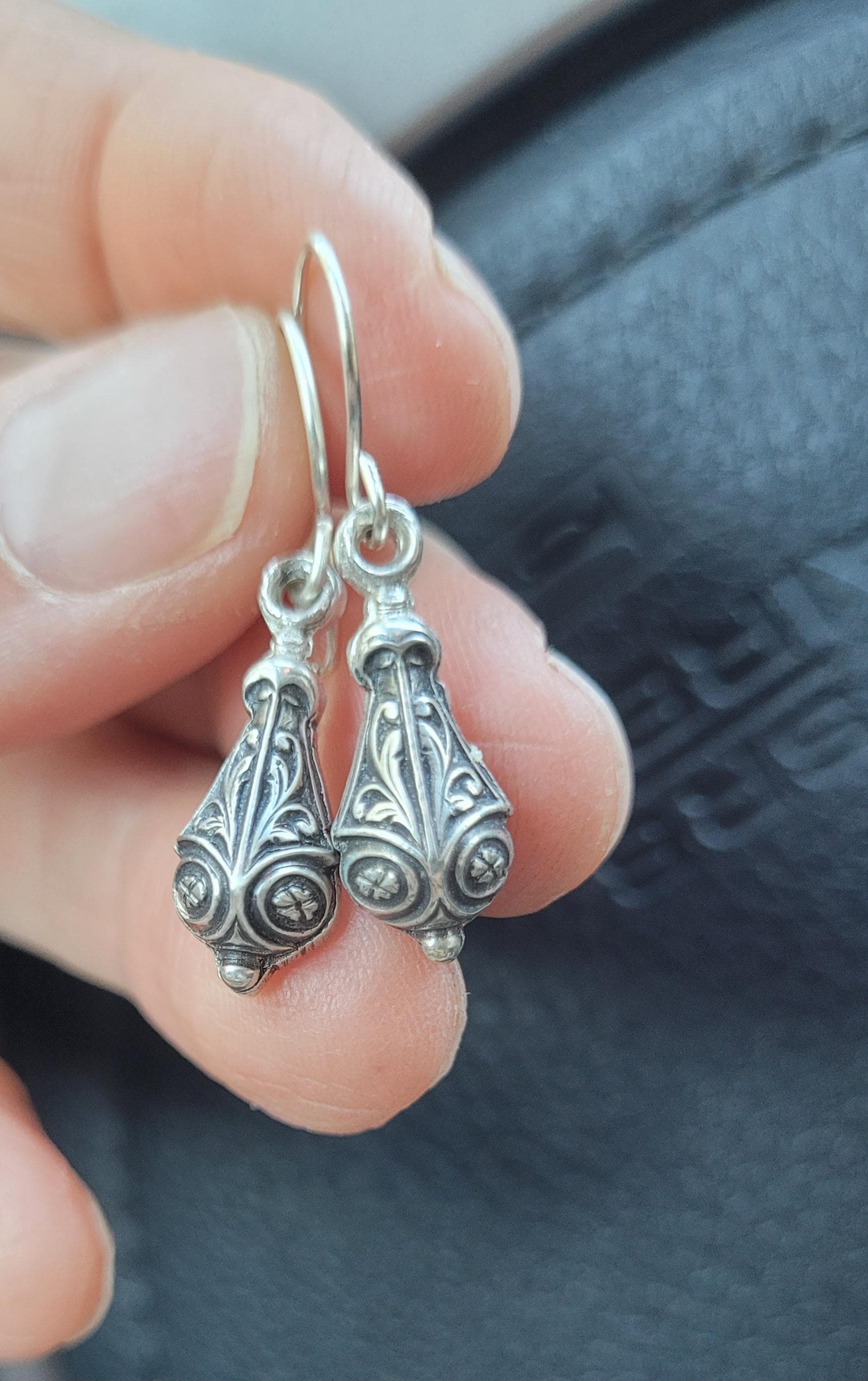 Sweet and dainty delicate drop earrings. These are subtle and stunning. Very understated but the details are sweet and demure. Made from vintage die from early 1900's from Paris France
