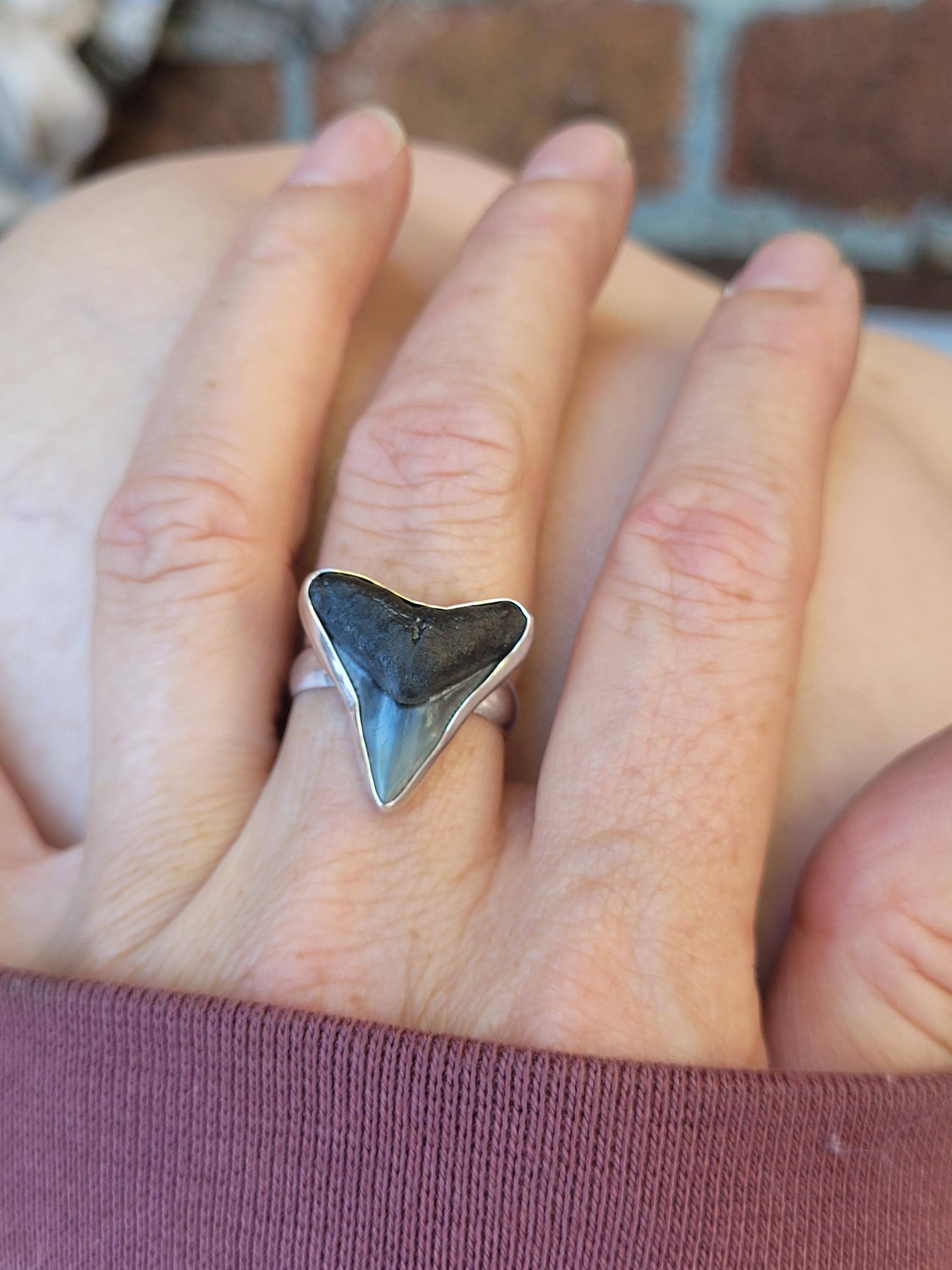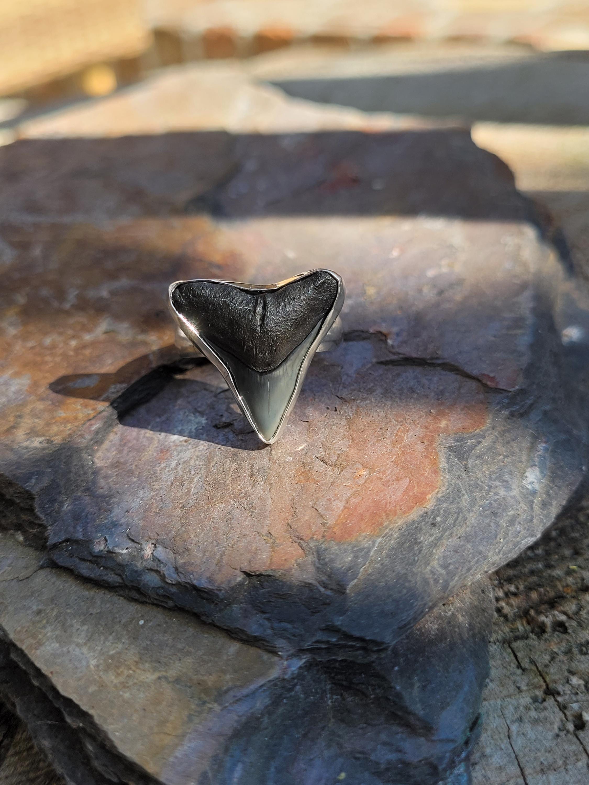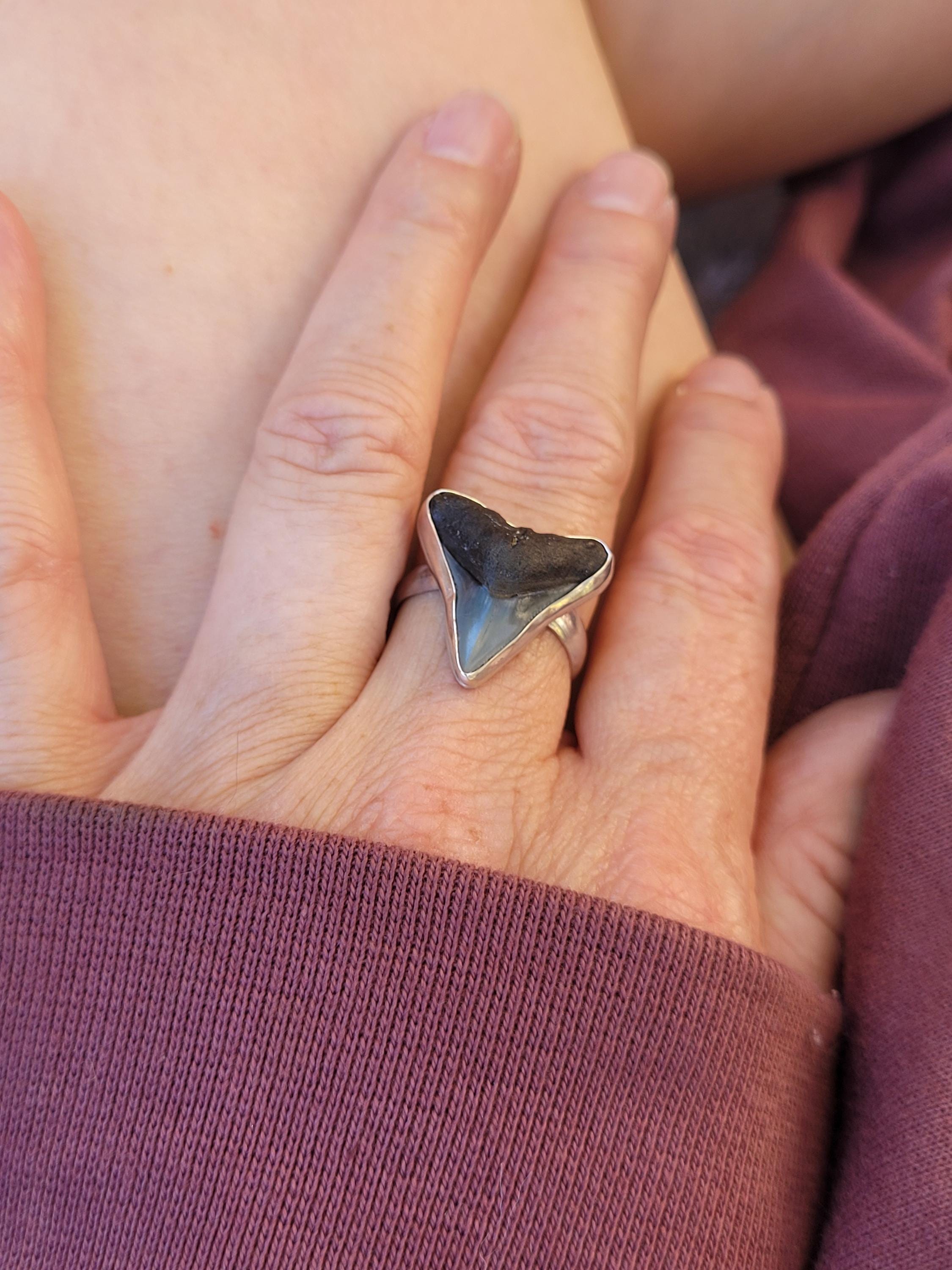Ethically sourced shark tooth that has been found on the ocean floor.