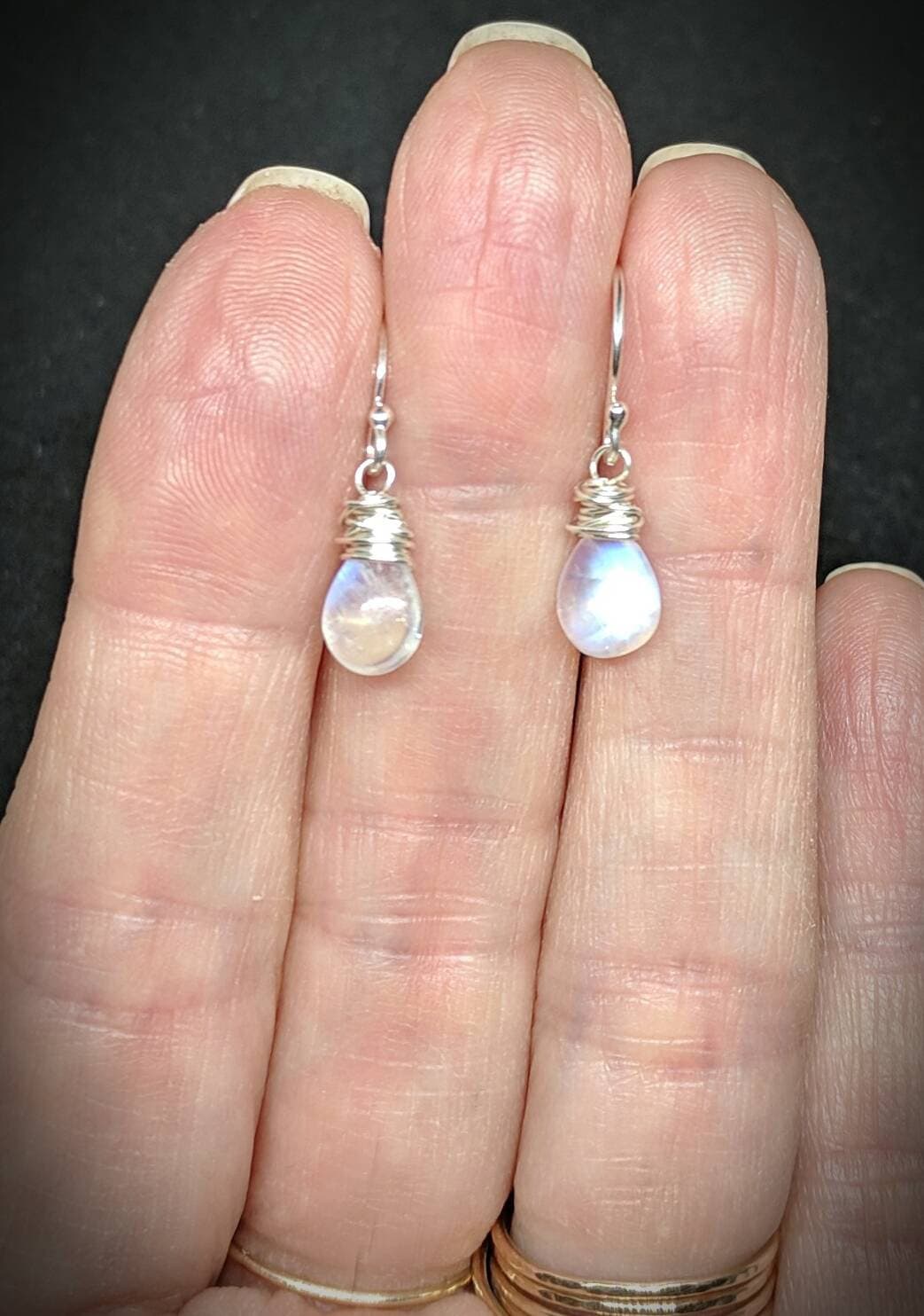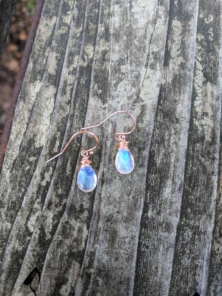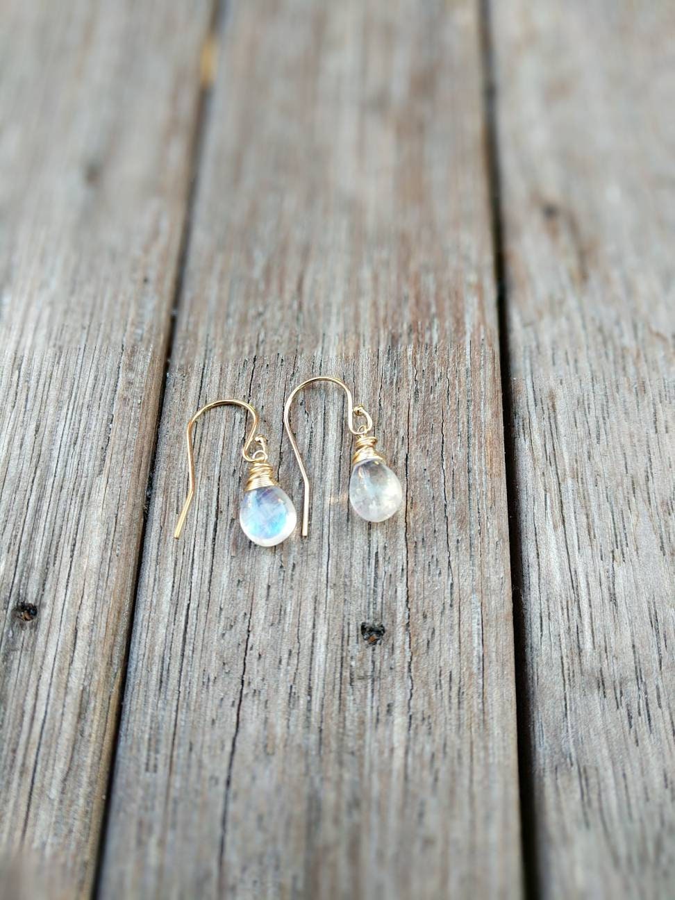 Simple and sweet moonstone earrings. In your choice of Sterling silver, gold filled or rose gold filled. Hand wrapped with love❤️