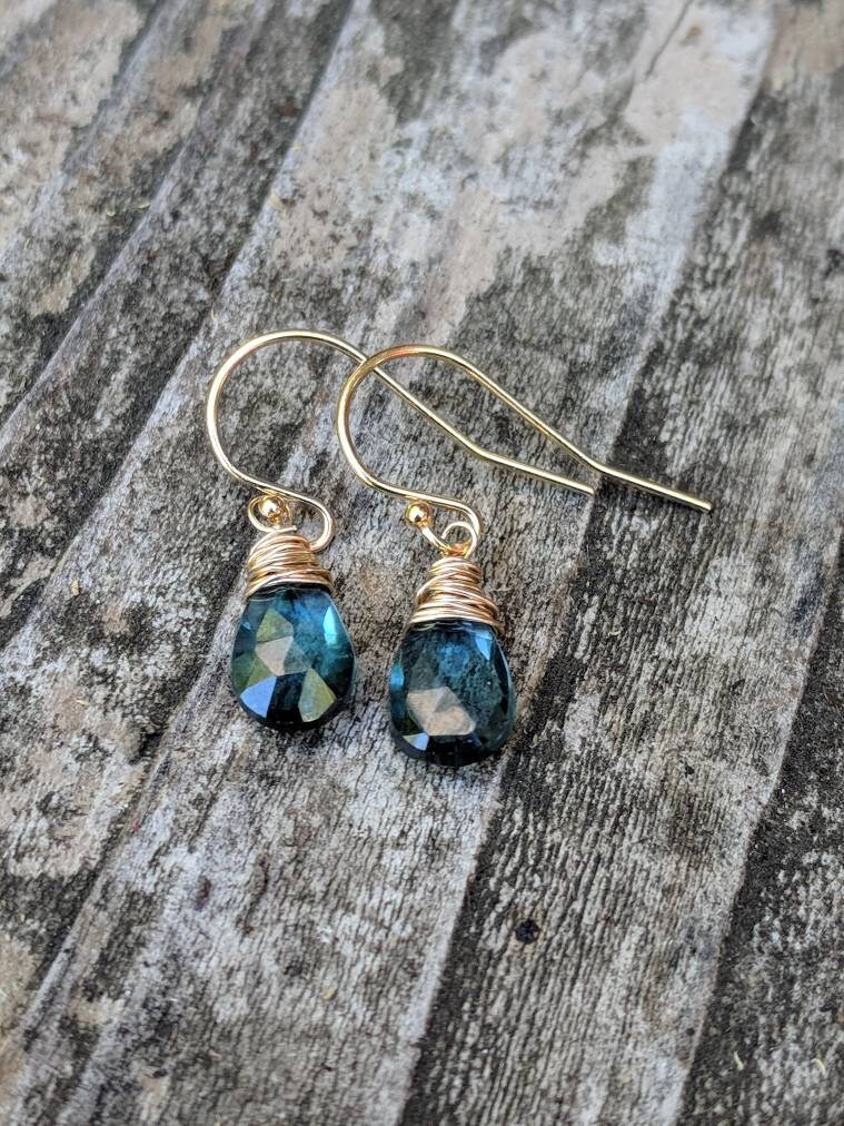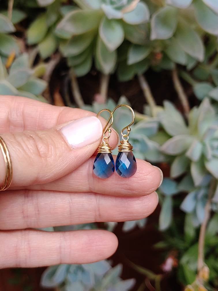 Like deep blue waters these London blue topaz quartz earrings are beautiful. Comes in either gold filled, rose gold filled and sterling silver. Dangles approx 1inch from earlobes and briolettes are approx 6x8mm in size.
