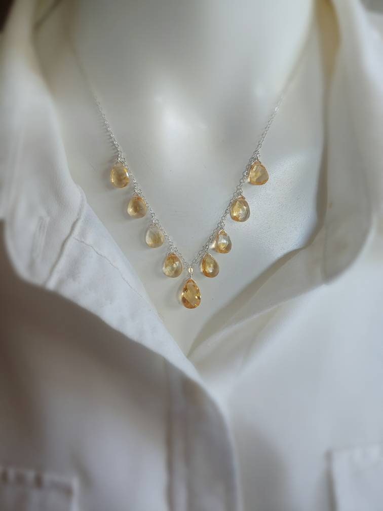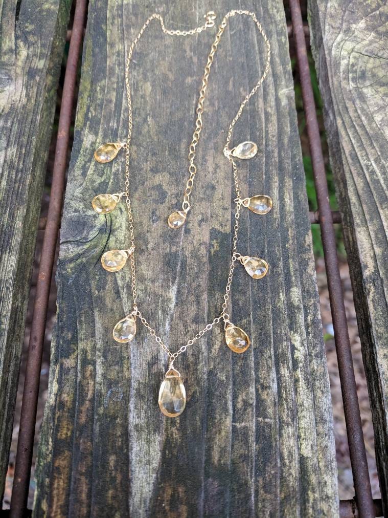 These gorgeous citrine gems dangle on your choice of gold filled, rose gold, or sterling silver chain. If you want to create your own and change gems just let me know! We can customize a necklace just for YOU.