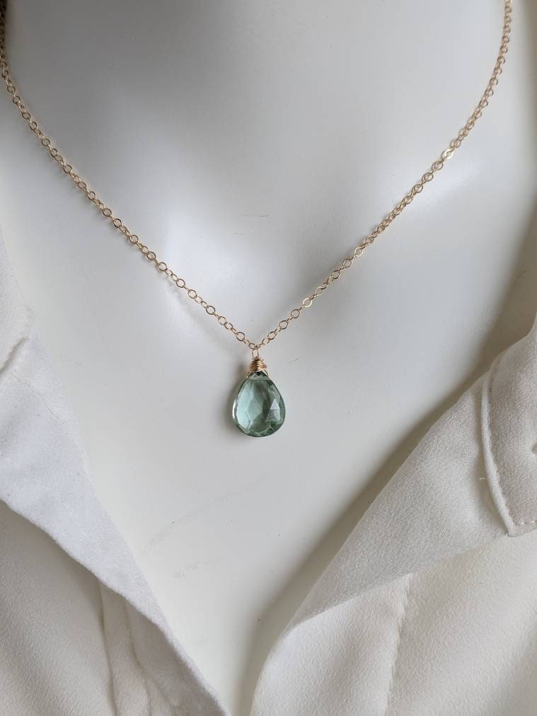 Dainty green Amethyst earrings. 6x8mm teardrop faceted gemstones. Hangs approx 1 inch from lobe. Green amethyst gemstone earrings in your choice of gold filled, sterling silver, or rose gold filled