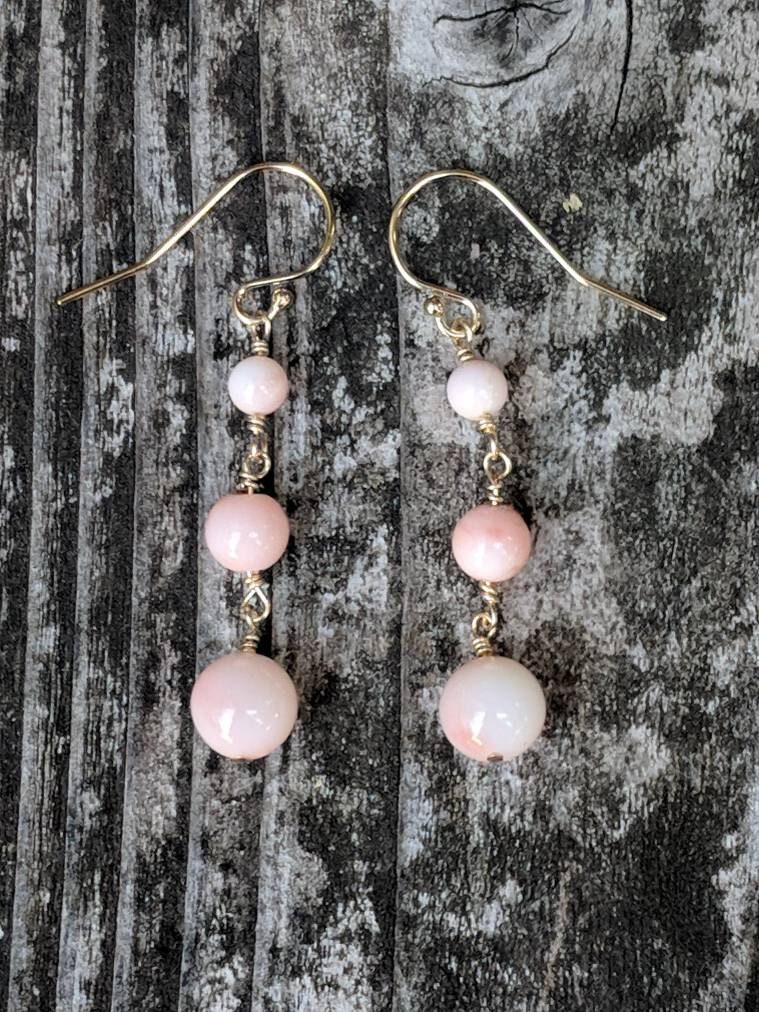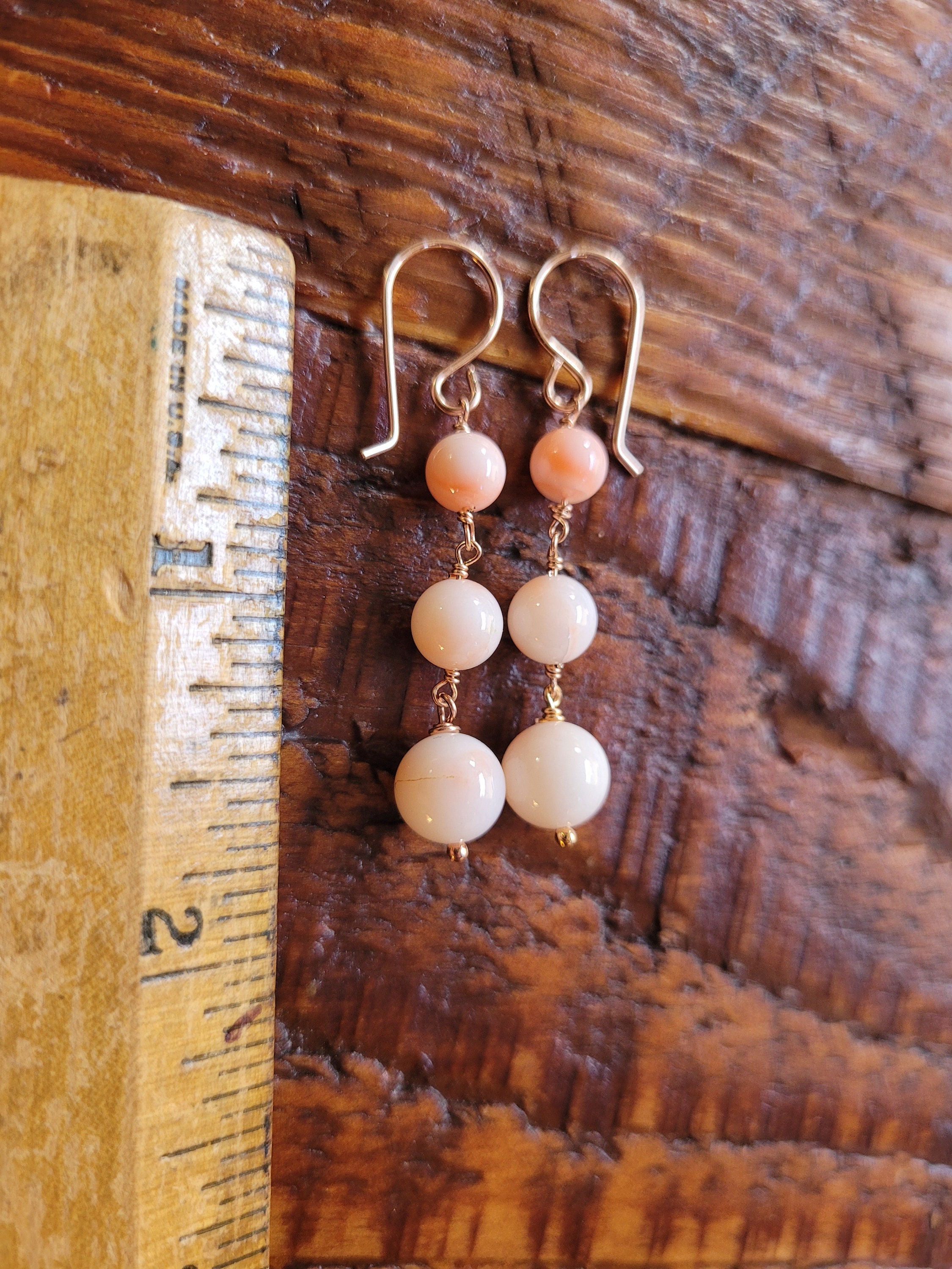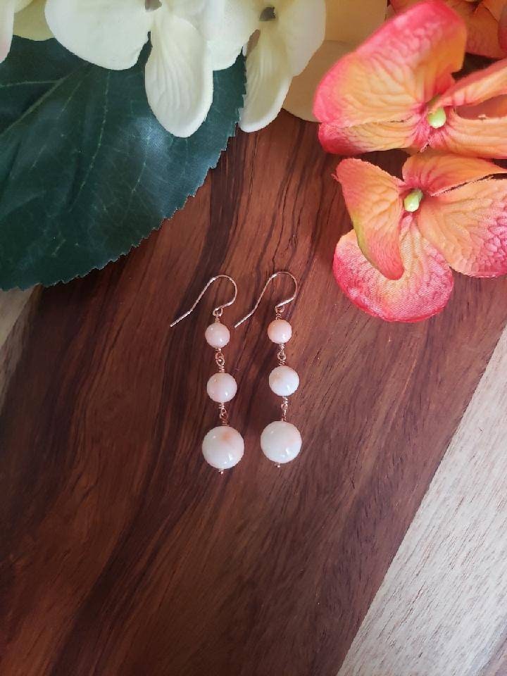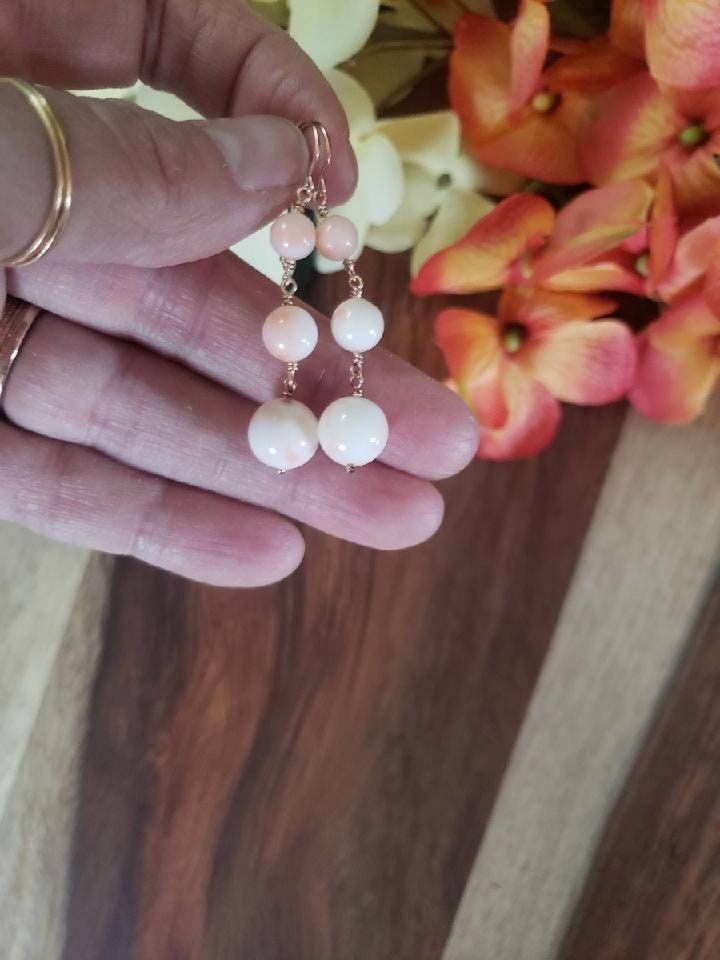 Vintage angel skin coral earrings. Sweet colors of coral, pink, peach, and creams all swirled into these beauties. These are real angel skin coral beads