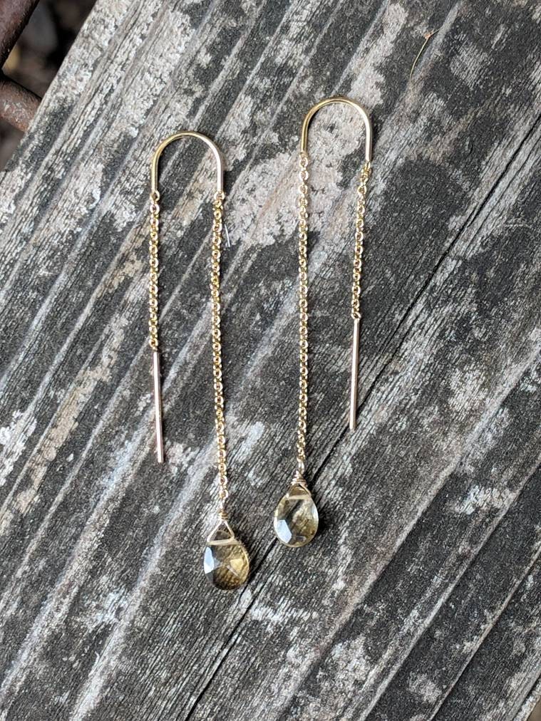 Dainty citrine threader earrings. Dangles approx 1.5 inches from lobe. Want these shorter? Let me know.
