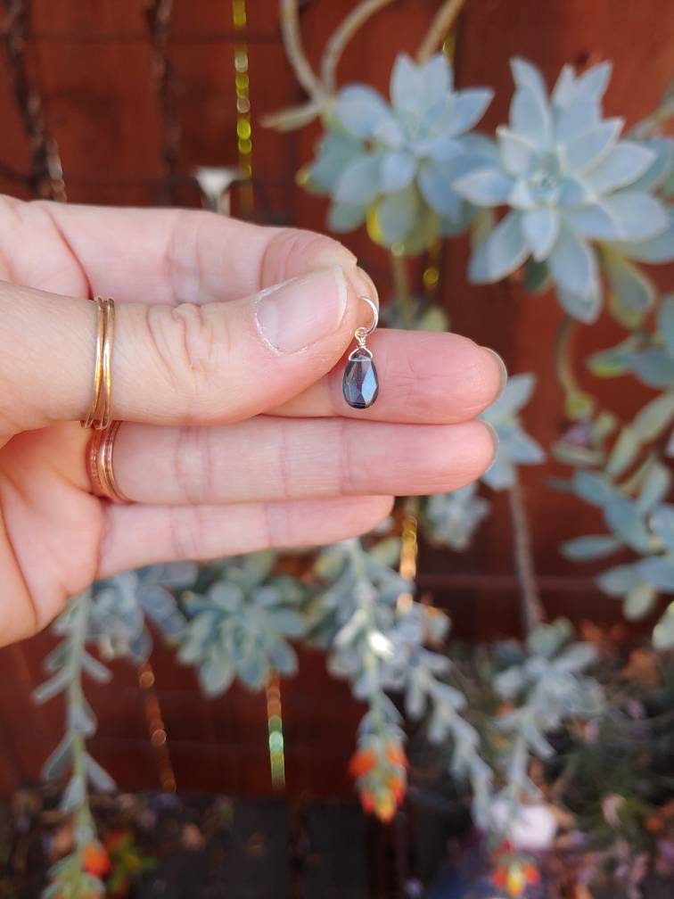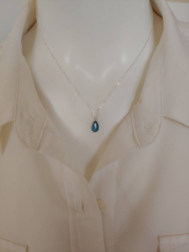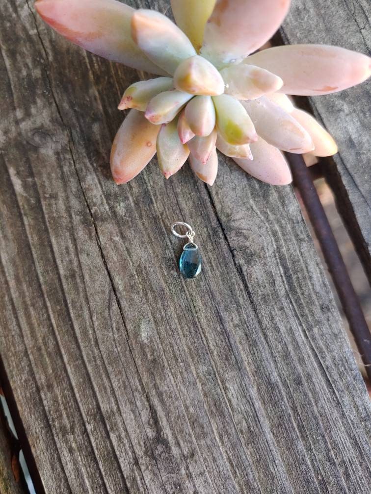 Dainty and sweet London blue topaz quartz teardrop on your choice of gold filled, sterling silver or rose gold. Hand wired with love! These briolettes are approx 8x10mm and are AAA cut gemstones.