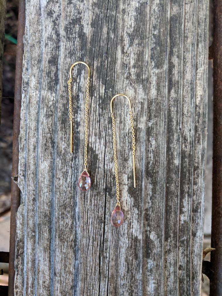 Dainty pink topaz threader earrings. Dangles approx 2 inches from lobe. These are 4mm pink topaz gemstones. Want these shorter? Let me know