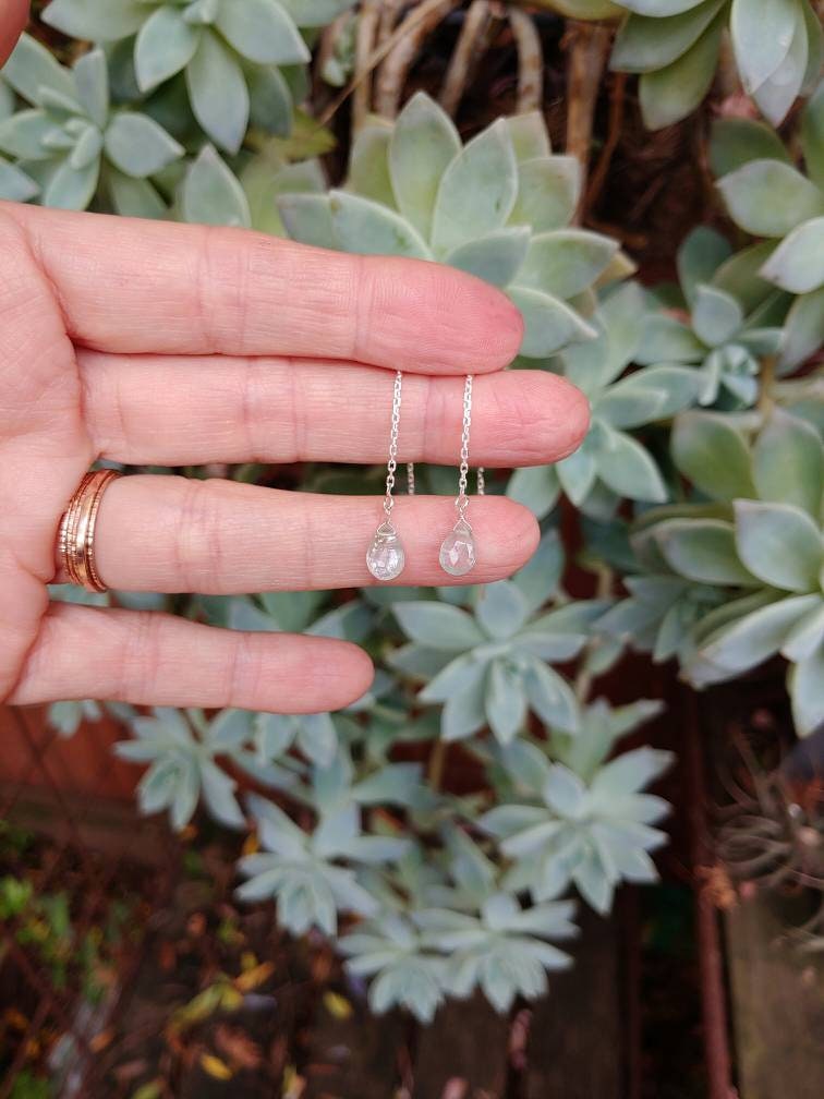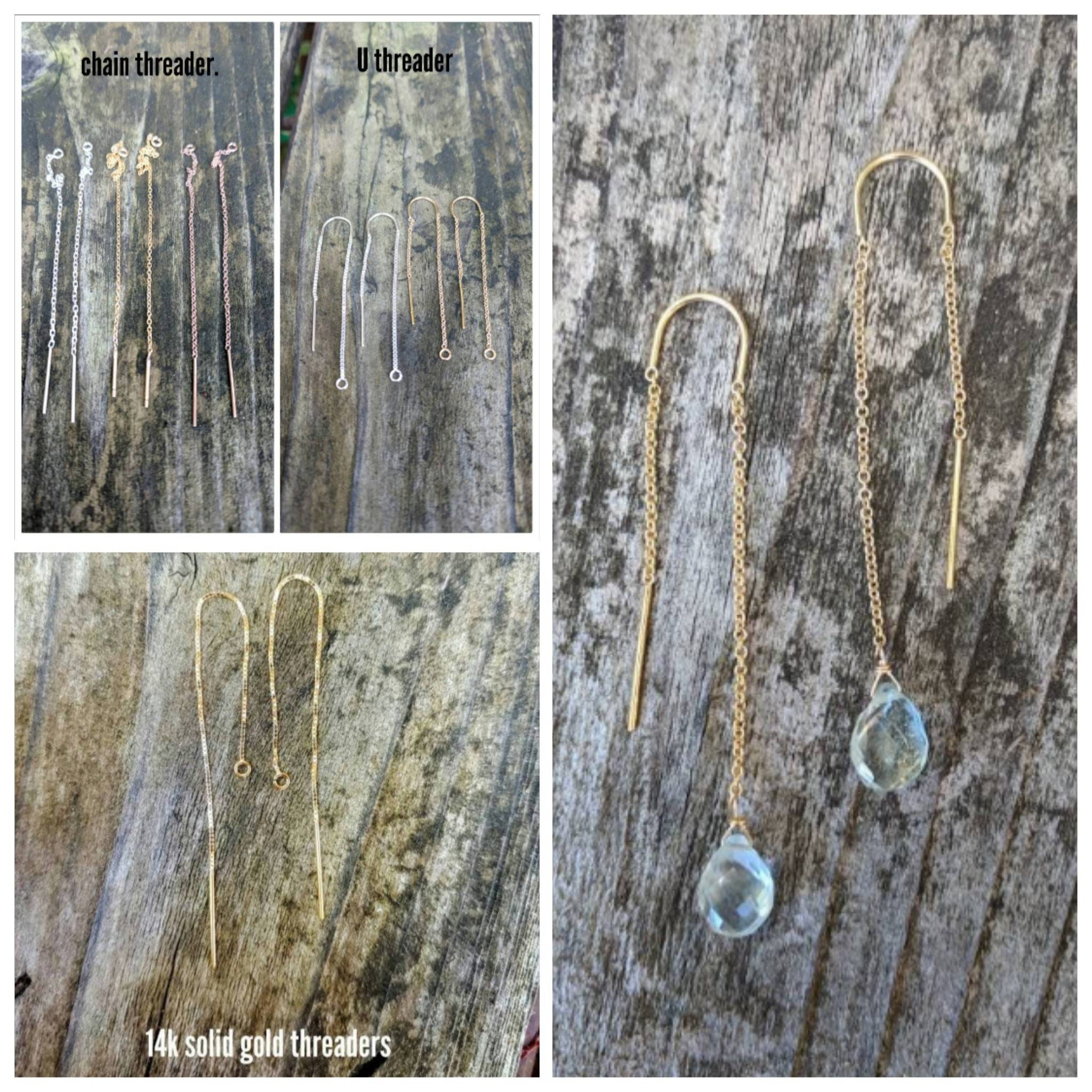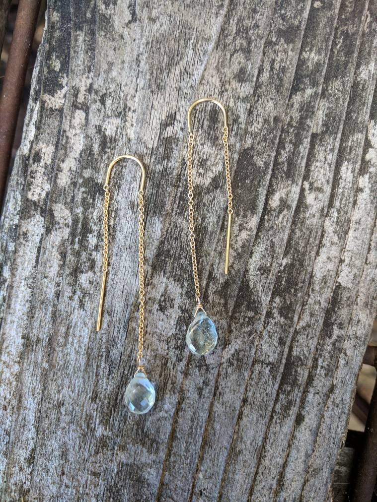 Aquamarine threader earrings dangle approx 2 inches from earlobe. These Aquamarine gemstones are approx 6mm and have beautiful soft hues of blue. Have a special request? Ask me