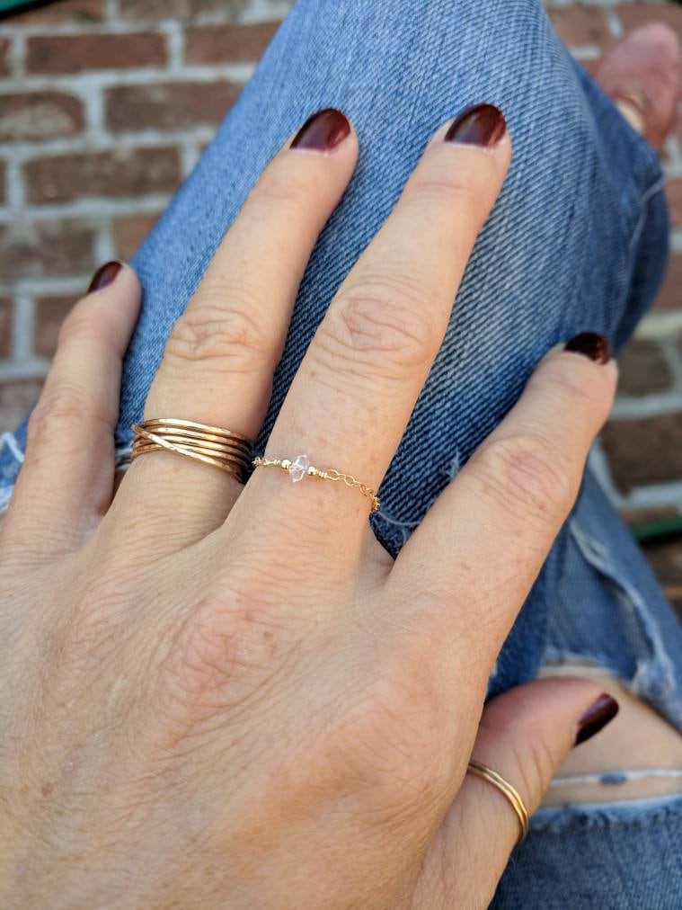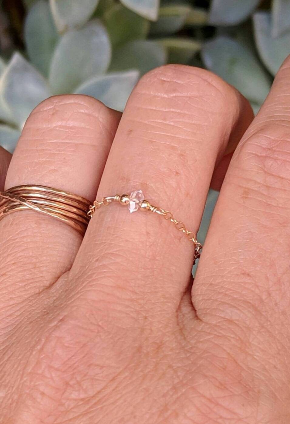 Herkimer ring. Dainty diamond ring. Petite gold ring. Dainty gold chain ring