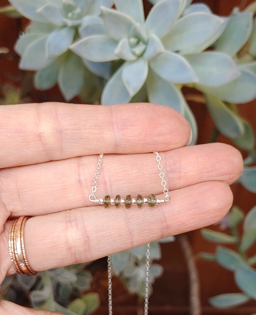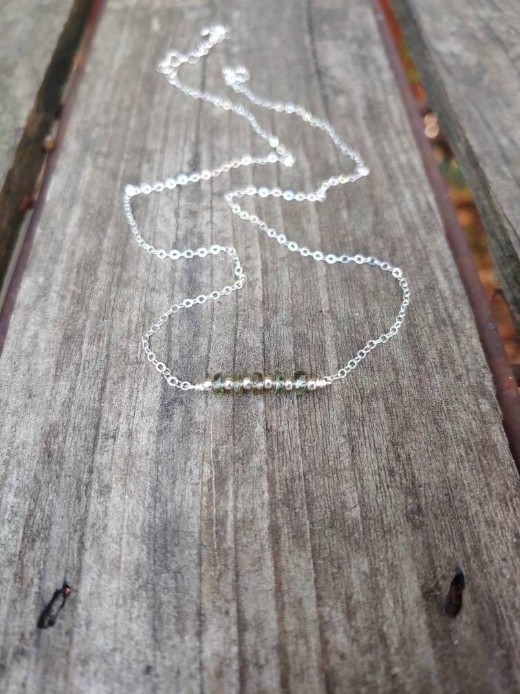 Dainty Moldavite necklace in gold filled, rose gold and Sterling silver. 3x5mm faceted REAL moldavite gemstones hand wired with love.