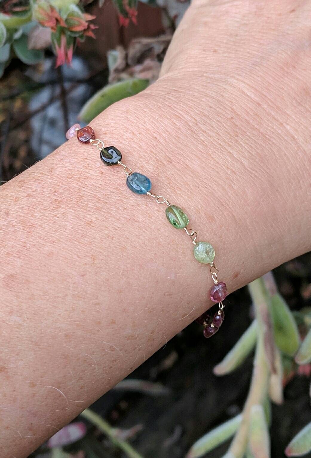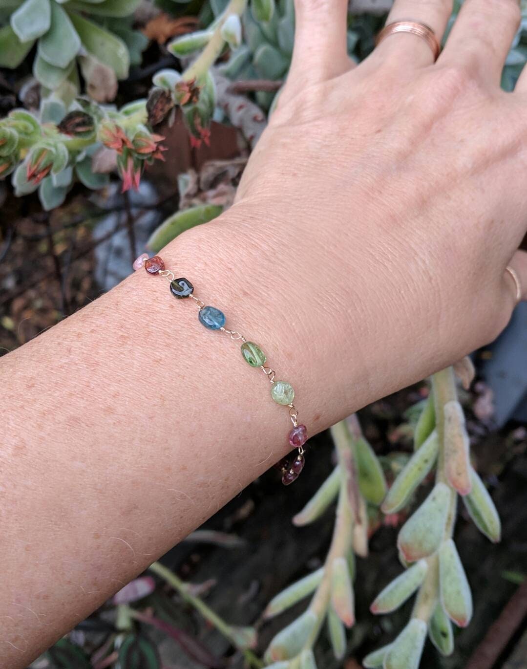 Dainty watermelon tourmaline bracelet. I hand pick these gems to make a beautiful ombre effect and wire with love!❤️