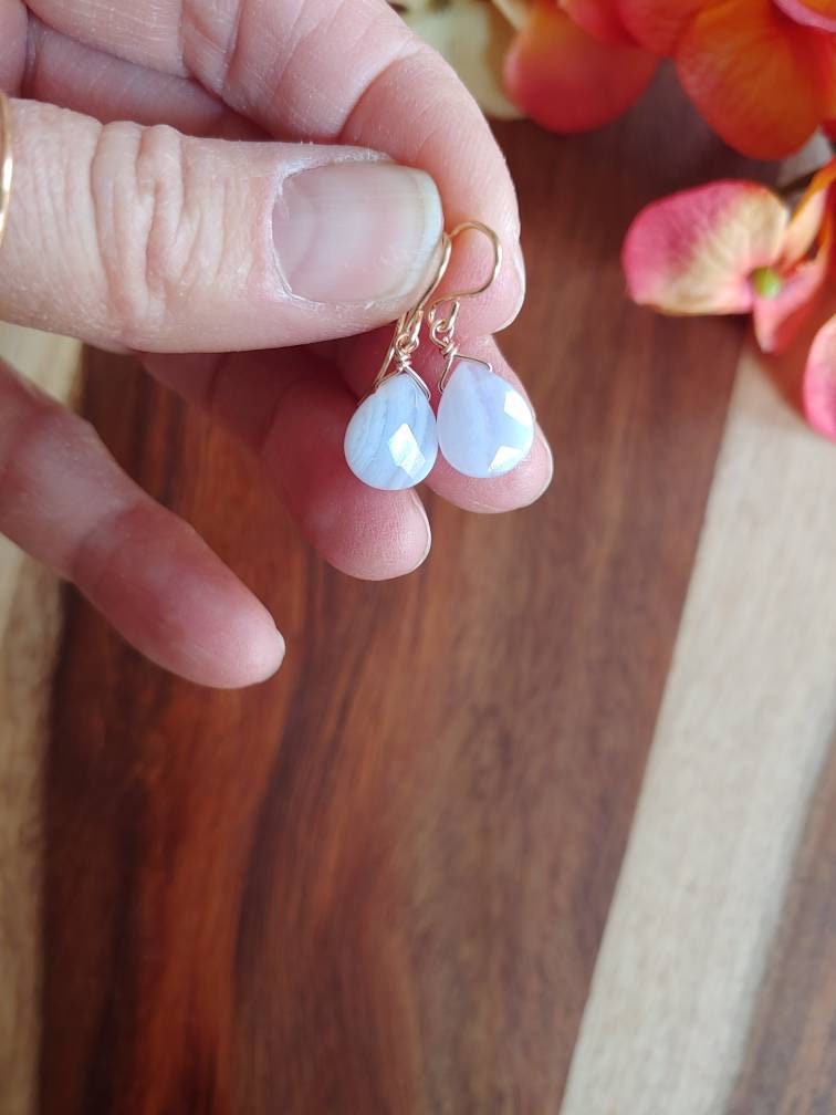 Soft and sweet baby blue hues in these dainty gemstone earrings.