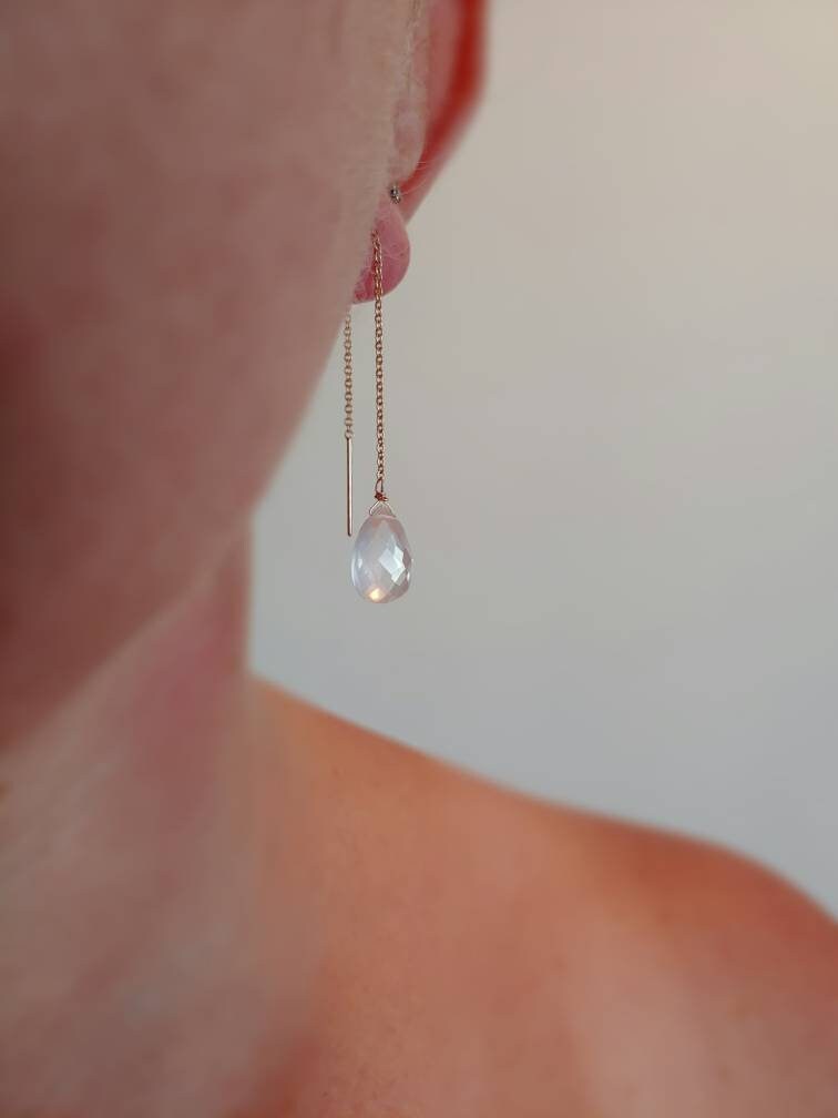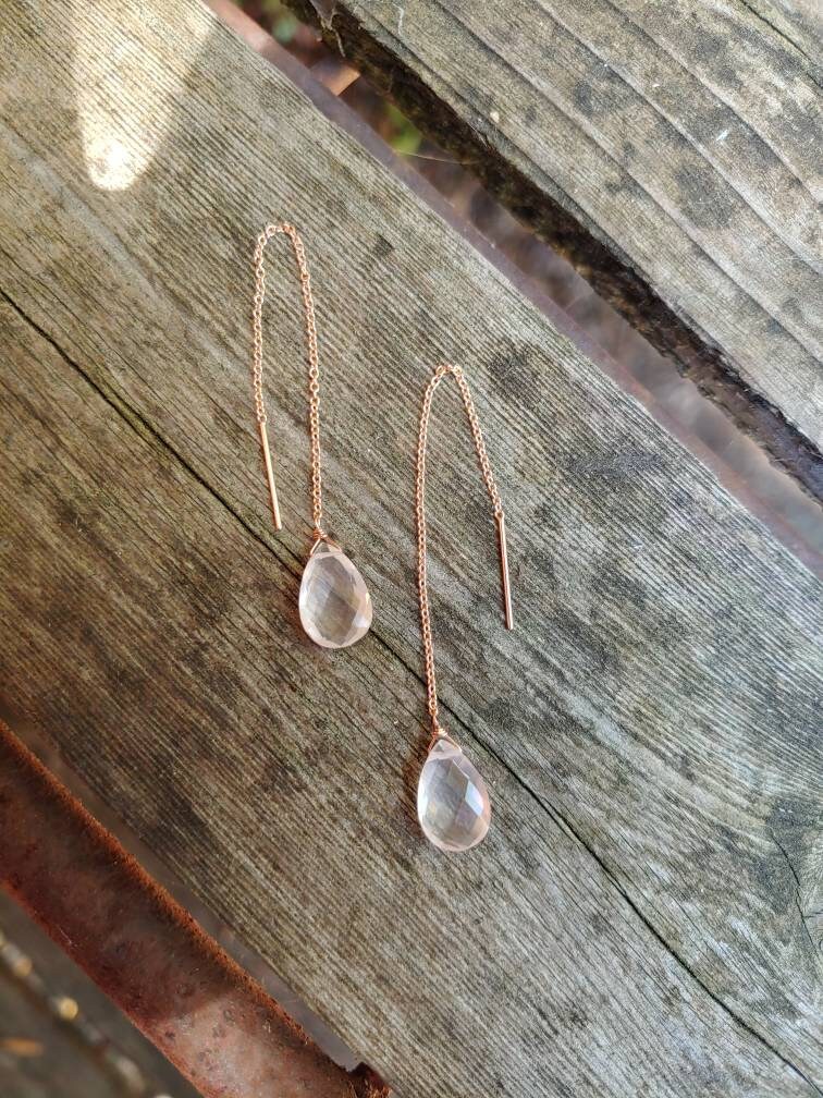 Dainty rose quartz threader earrings. Dangles approx 2 inches from lobe. These are 8x10mm rose quartz faceted gemstones. Want these shorter? Let me know