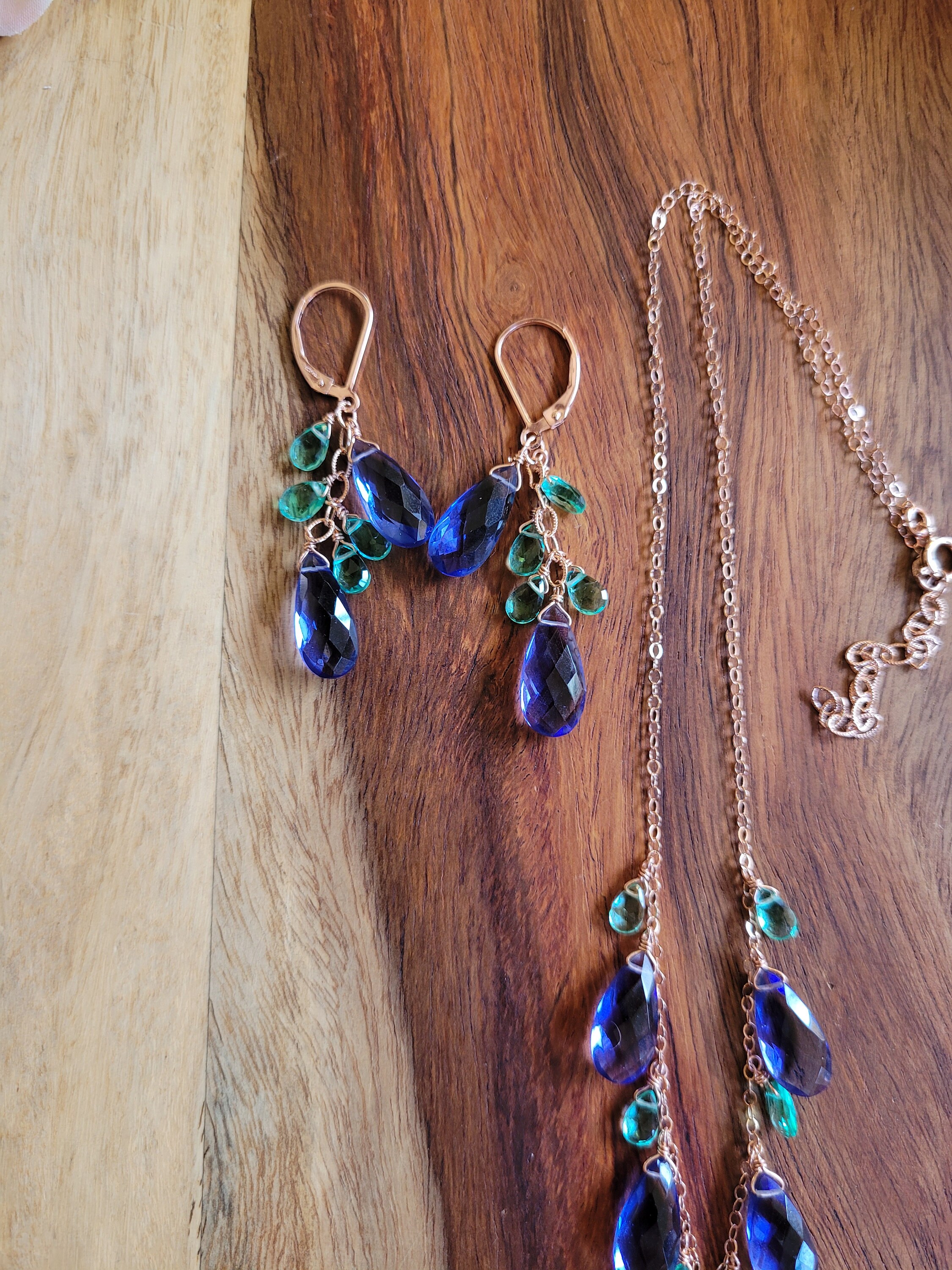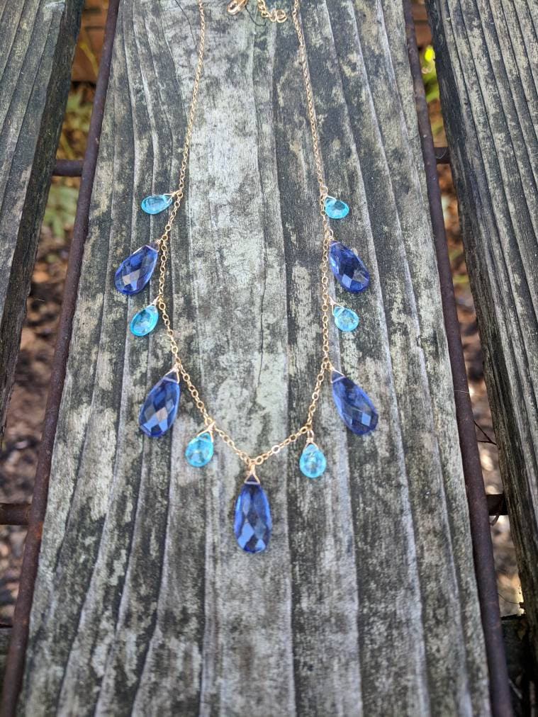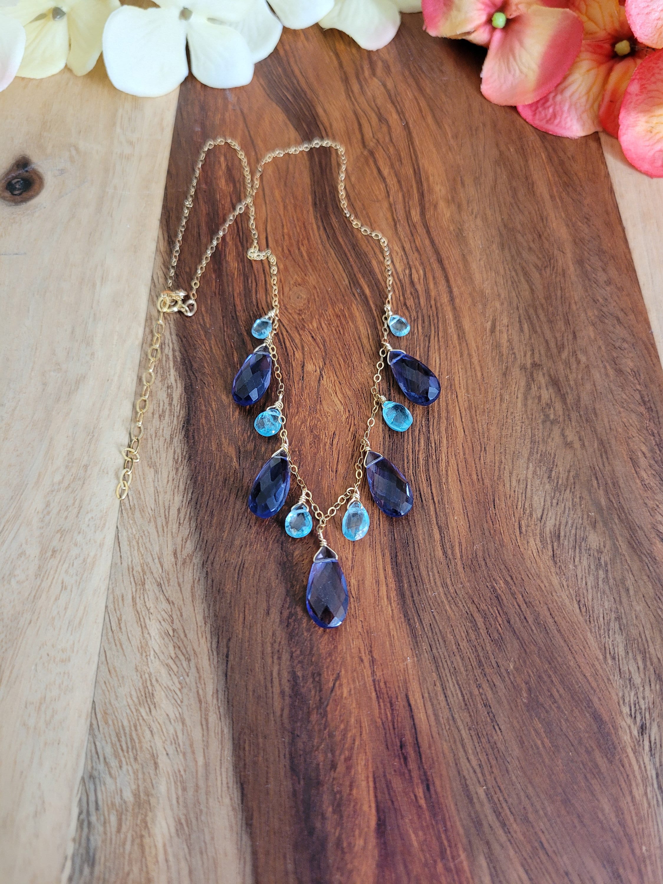 Elegance in sweet periwinkle and ocean blue all wrapped up in this gorgeous necklace. Faceted tanzanite quartz gemstones dazzle in this piece!