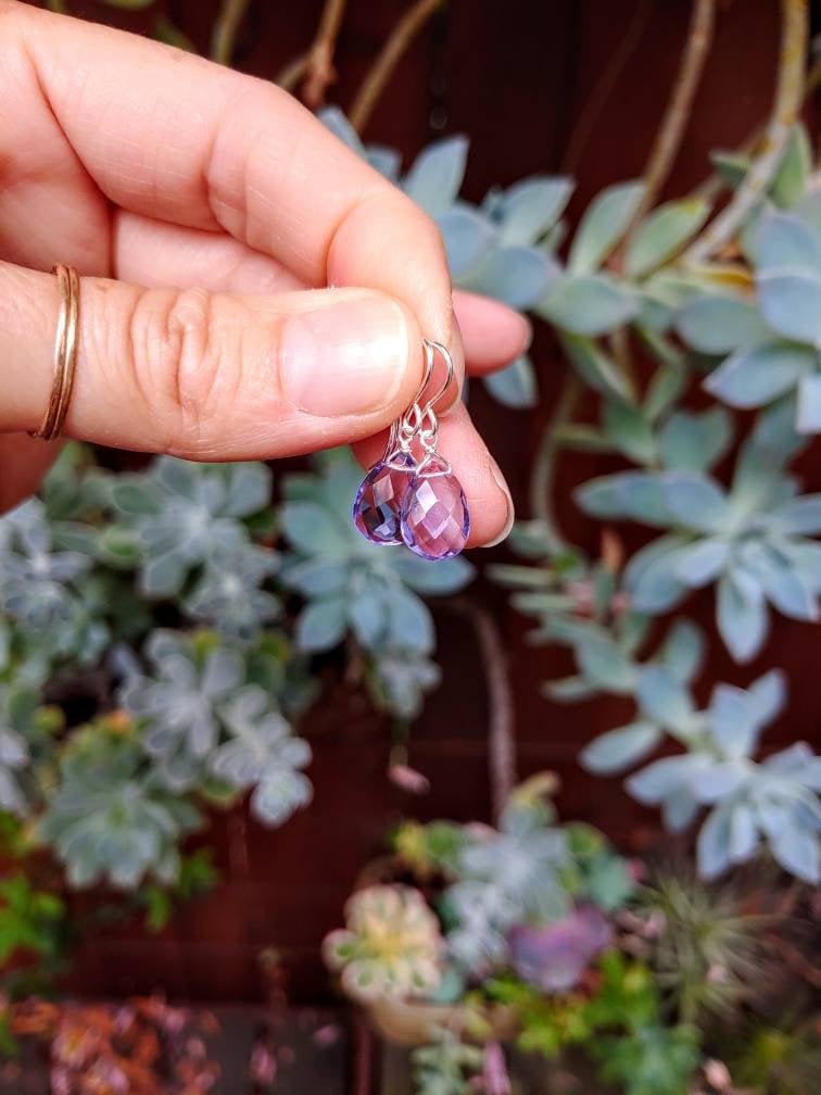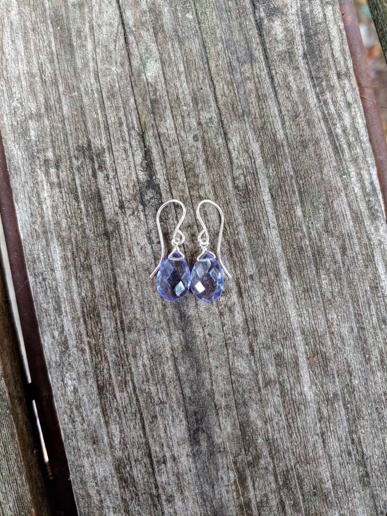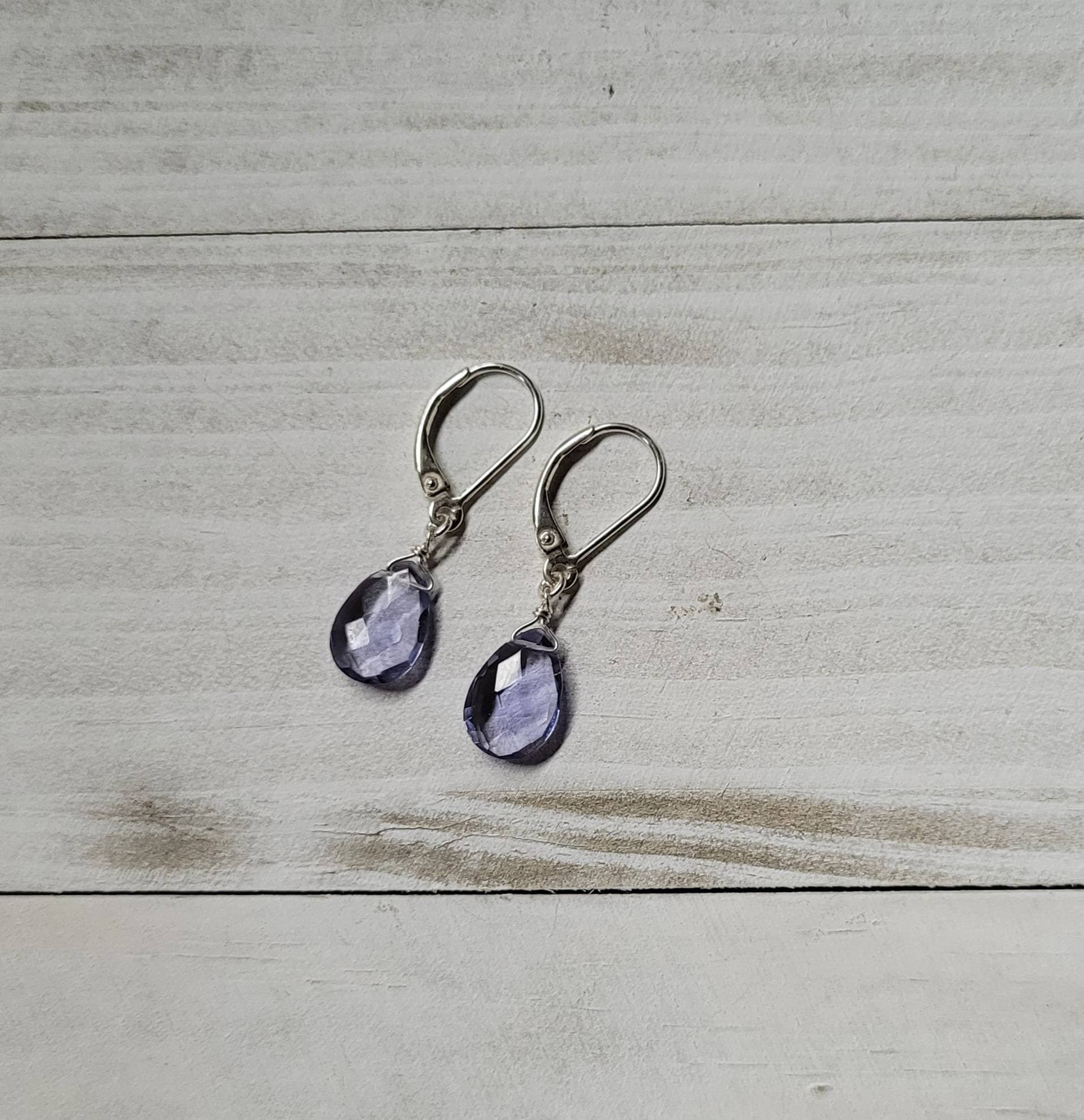 Elegant Tanzanite quartz earrings. 6x8mm gemstones dangle approx 1.5 inch from lobe. Hand wrapped with love! These are tanzanite quartz earrings.