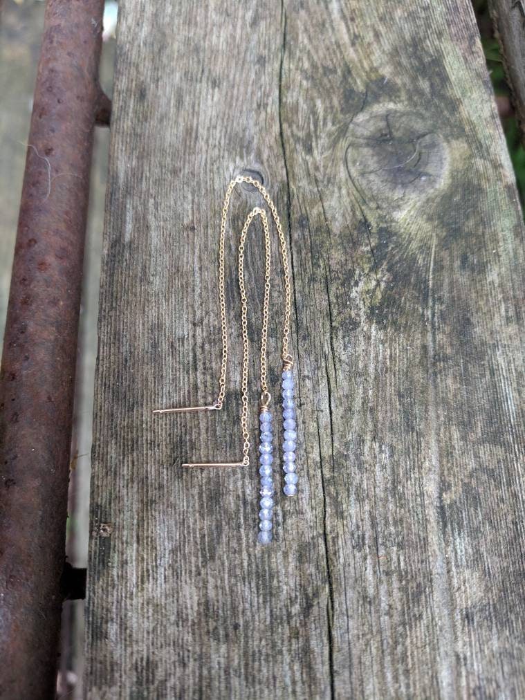 Long tanzanite earrings. Available in sterling silver, 14k gold filled and rose gold filled.