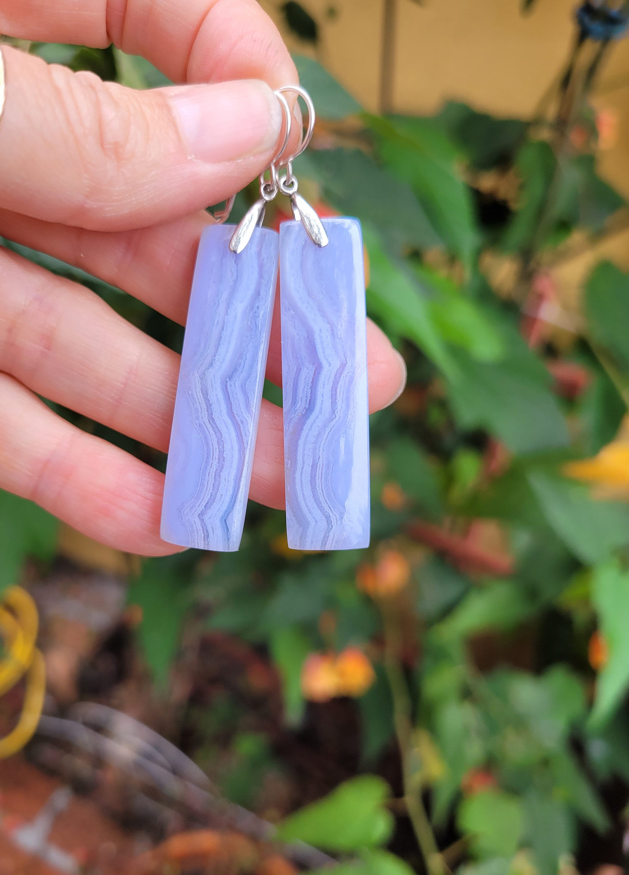 I offer smaller and longer in my shop if you want more dainty blue lace agate earrings click here https://etsy.me/32eektC