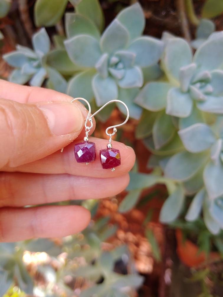 Dainty and sweet these cube shaped natural ruby earrings are demure and sweet.