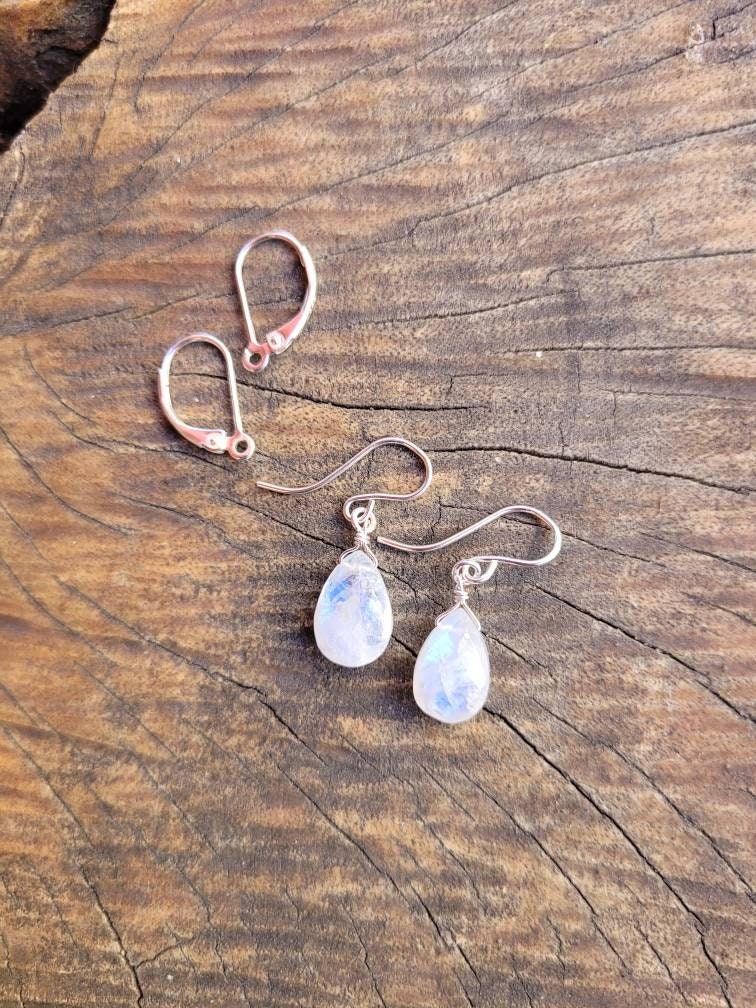 Gorgeous rainbow hues in these teardrop shaped rainbow moonstone earrings.