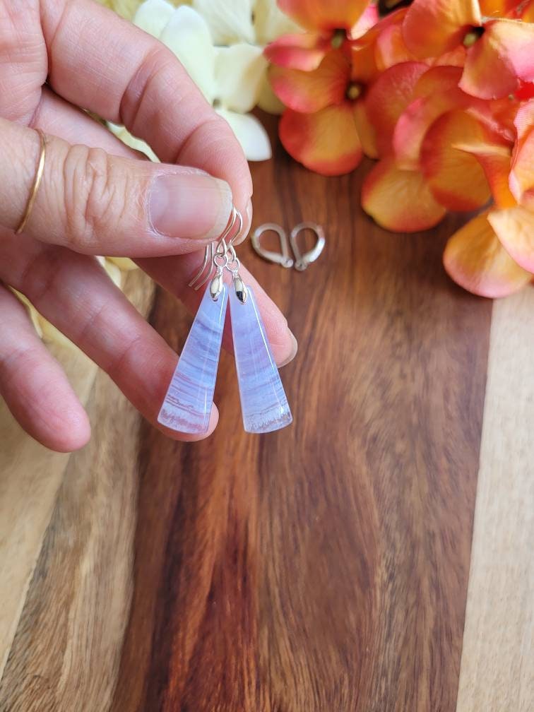 Soft and sweet baby blue hues and striations in these agate gemstone earrings.