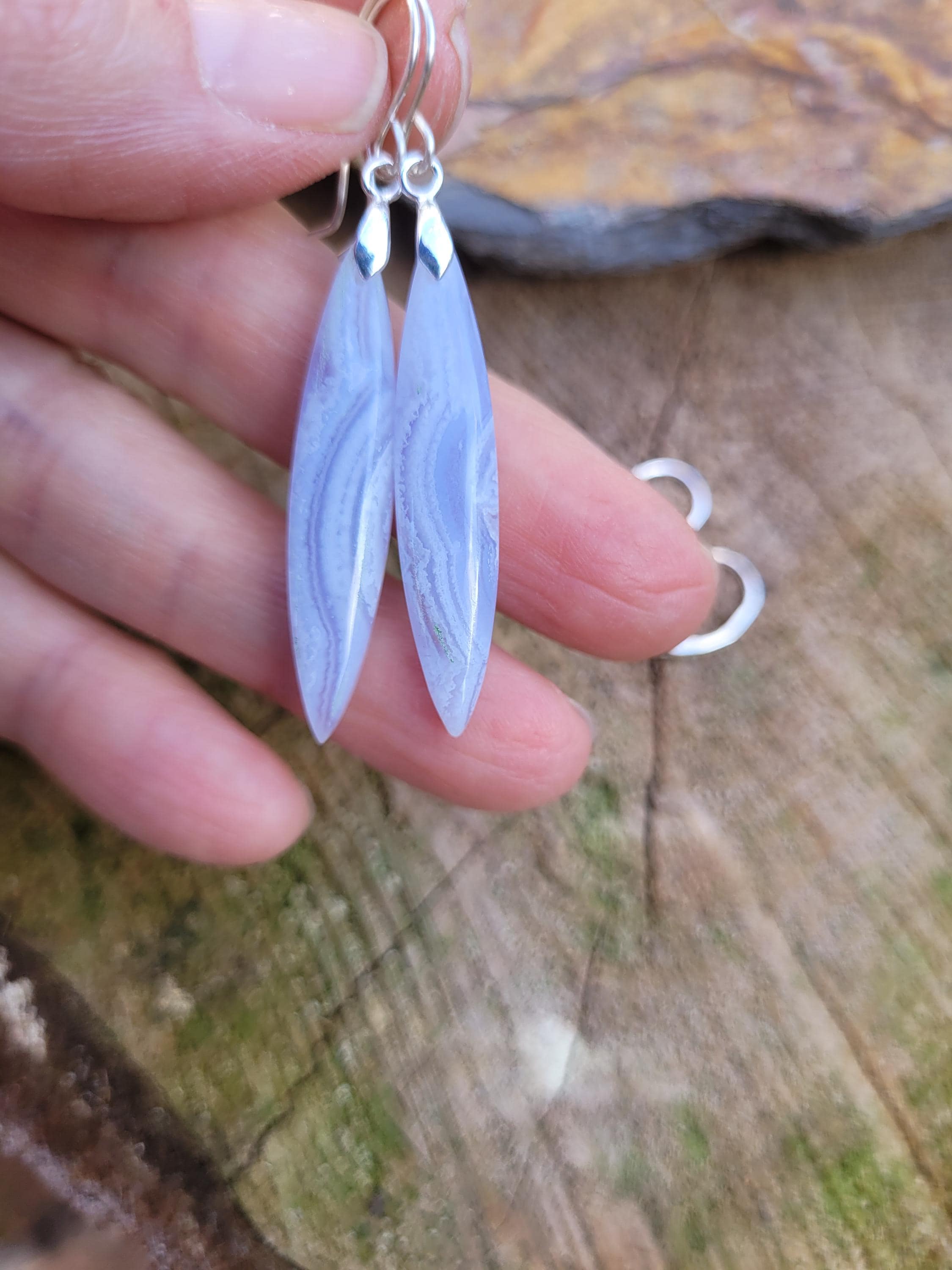 Soft and sweet baby blue hues in these marquise shaped gemstone earrings.