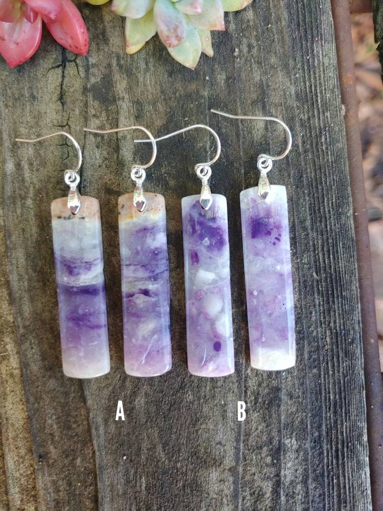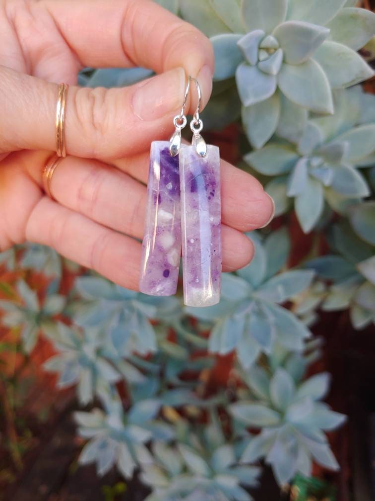 These beauties have the sweetest purple hues and have multiple purple colors throughout. These dangle approximately 2 inches from earlobe. ❤️