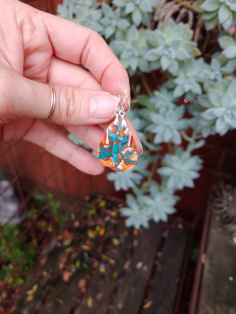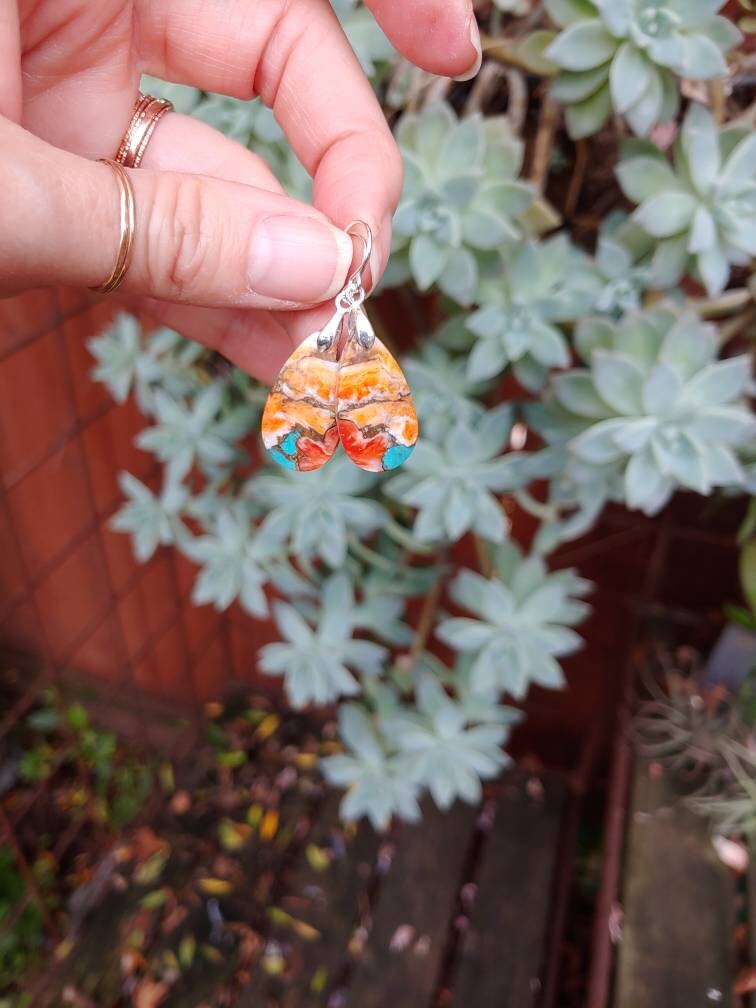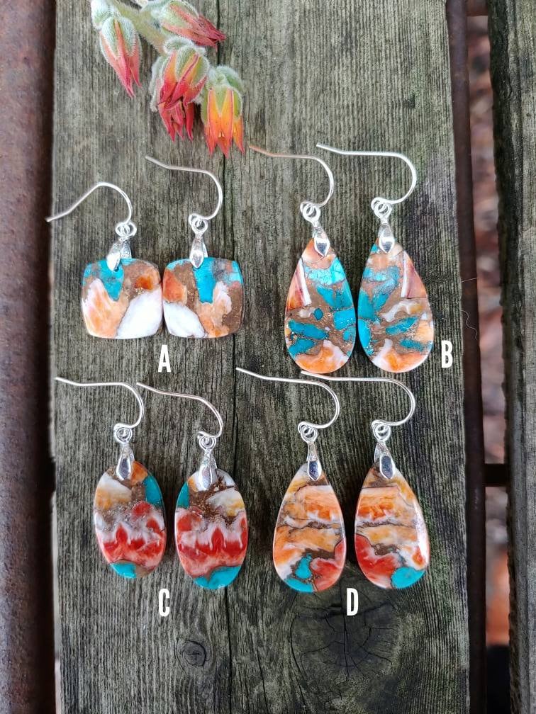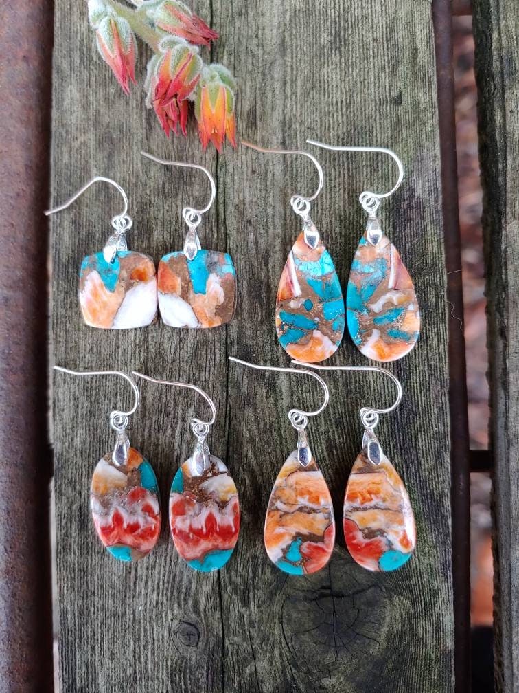 Turquoise spiny oyster earrings. Avail in sterling silver only