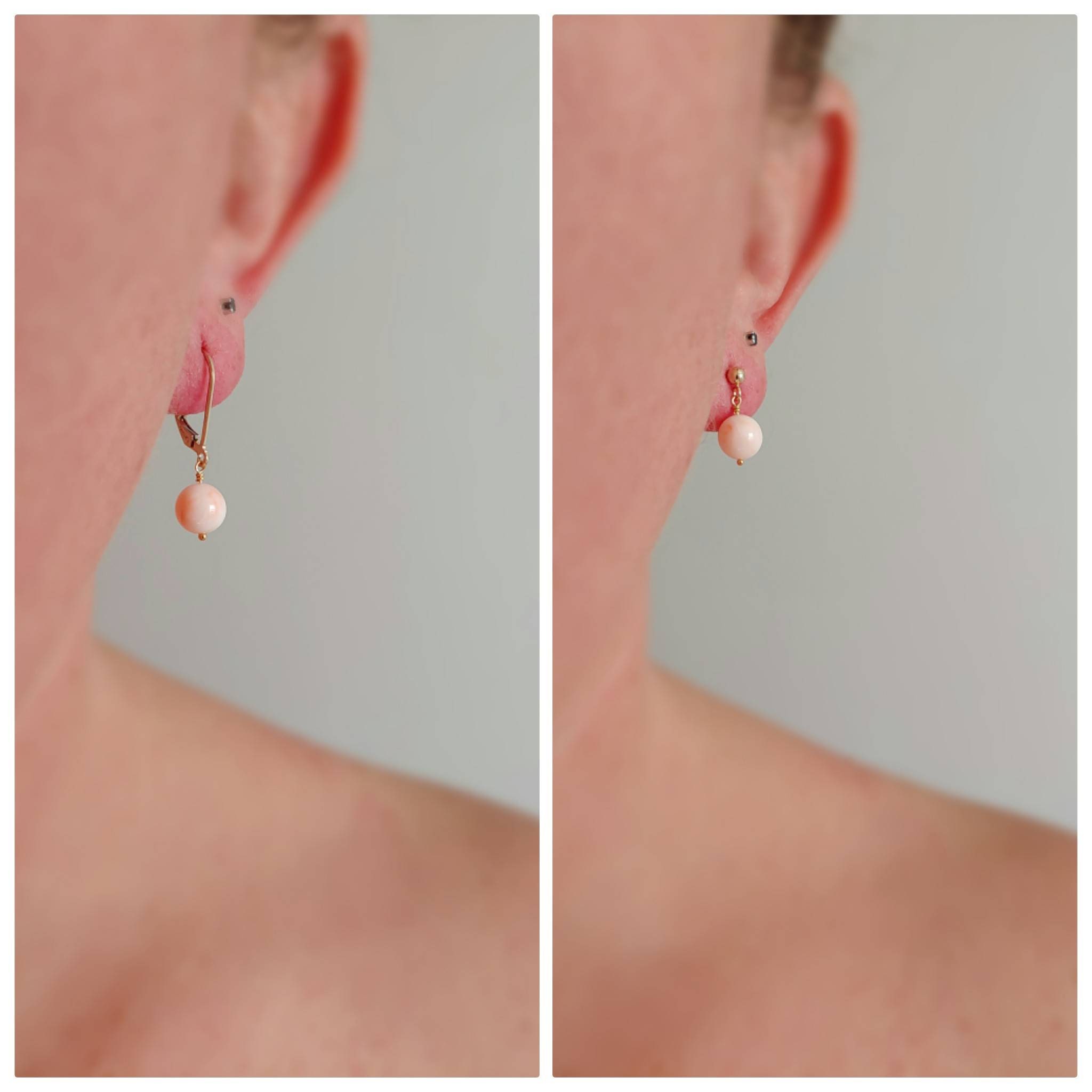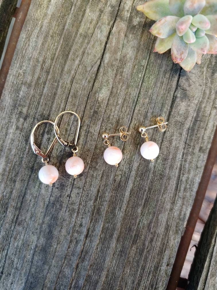 Vintage natural angel skin coral earrings. Sweet colors of coral, pink, peach, and creams all swirled into these beauties.