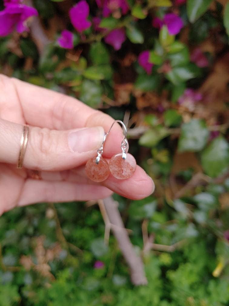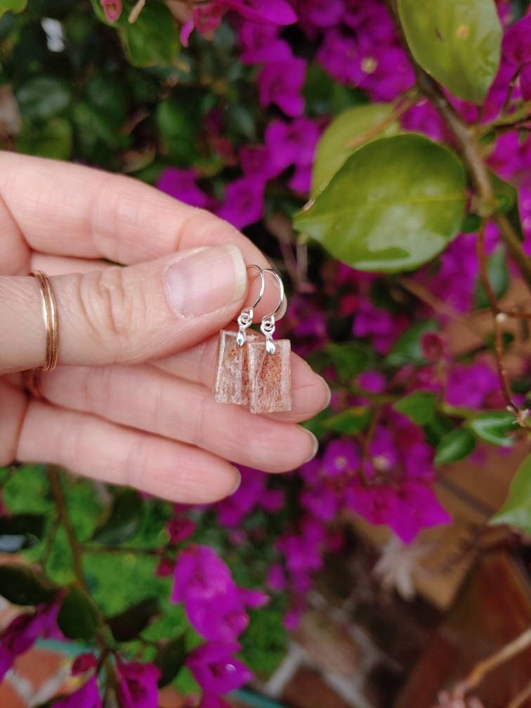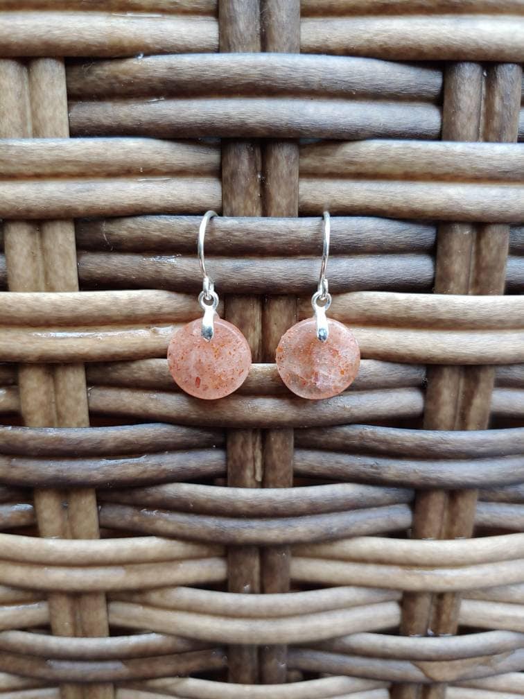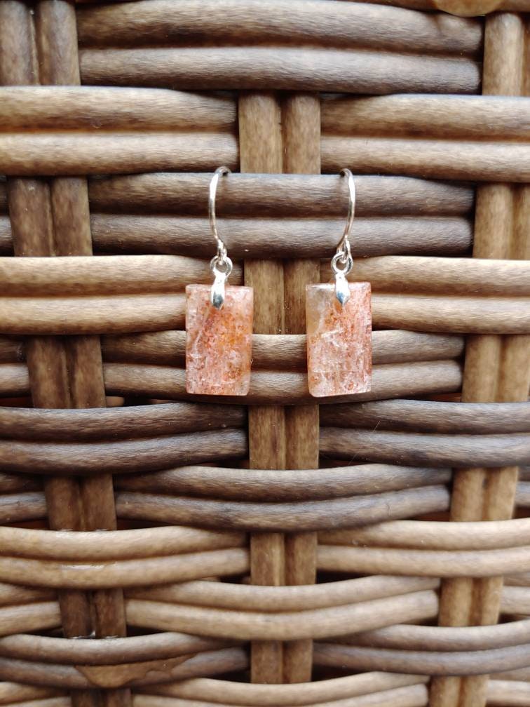 Petite sunstone drop earrings. With two pairs to choose from. round or rectsngle gemstones are of sweet pinks and peaches hues.
