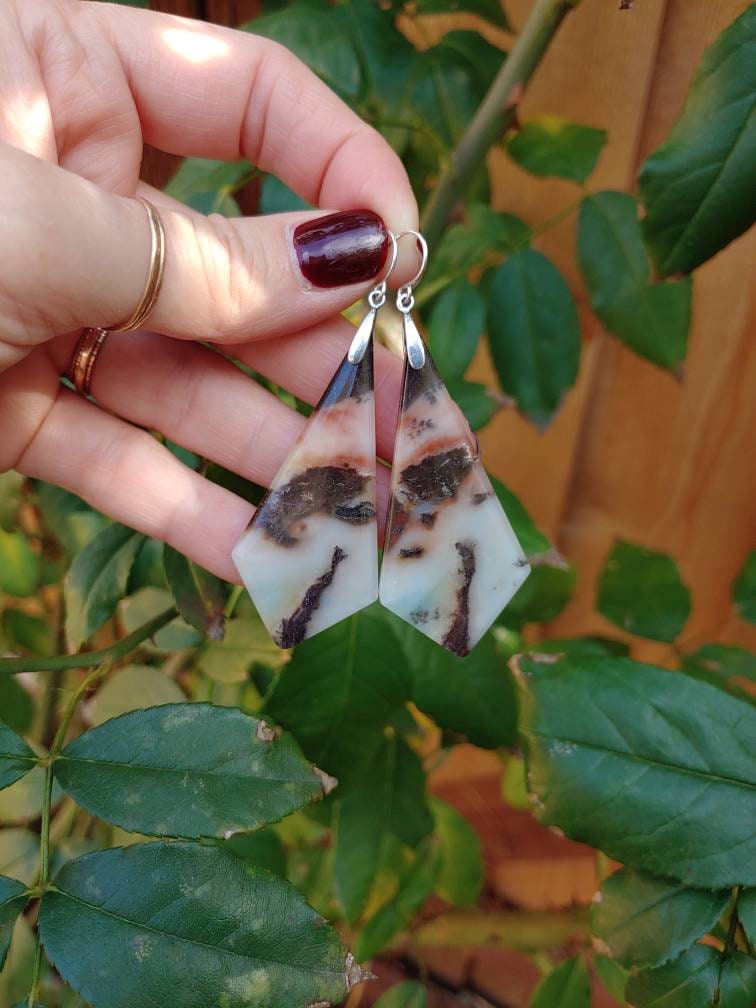 These unique amazonite earrings dangle approximately 3 inches from earlobe. These have wonderful baby blue hues that shows the quality of these gemstones. Unique scalloped shape ❤️