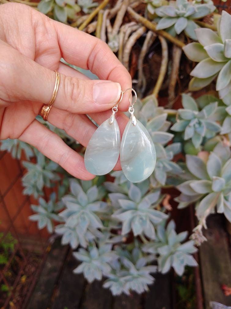 These amazing unique amazonite earrings dangle approximately 1.5 inches from earlobe. These have wonderful baby blue hues that shows the quality of these gemstones. Uniquely wrapped in a perfectly imperfect wire wrapping. ❤️