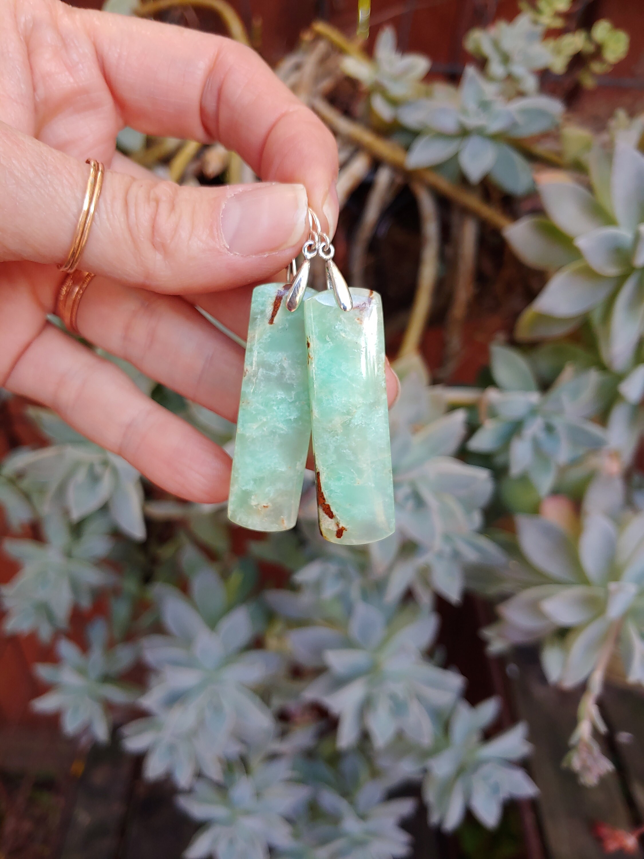 Like mint chocolate chip ice cream! These chrysoprase gemstone are gorgeous. These beauties dangle approximately 2 inches from the earlobe.