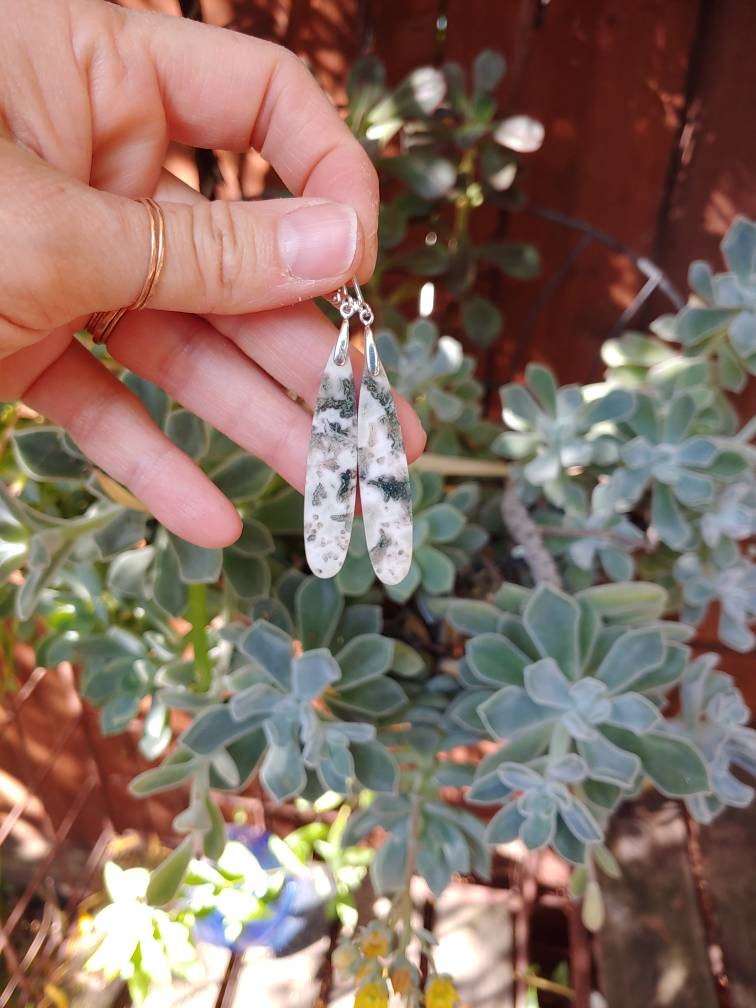 Gorgeous green and white hues in this pair of earrings. Avail in sterling silver only