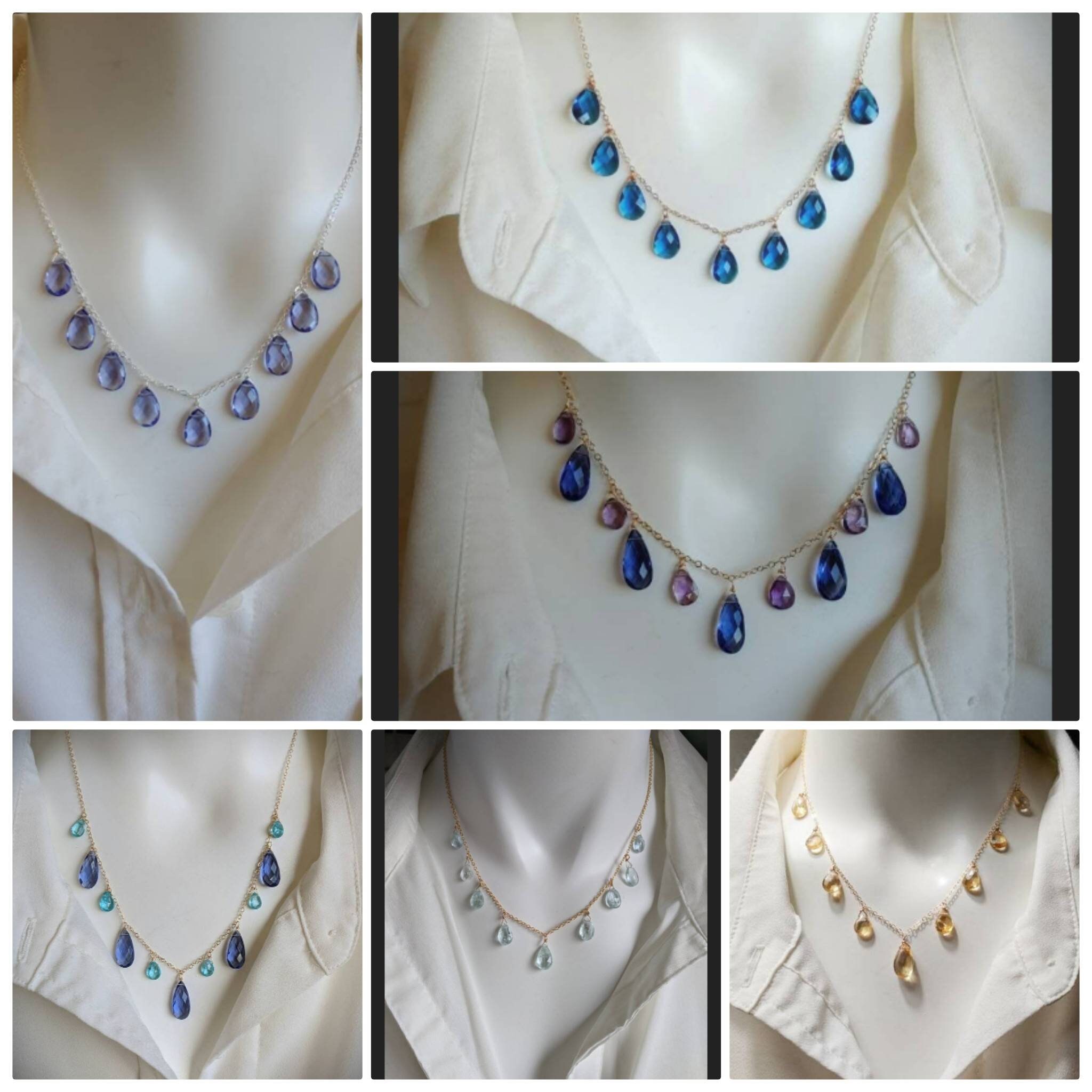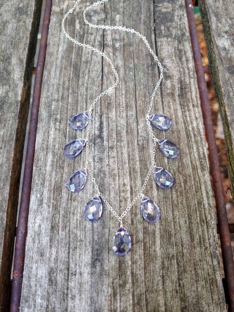 Stunning tanzanite quartz necklace. Quite the eye catcher with faceted gemstones on your choice of gold filled, sterling silver, or rose gold.