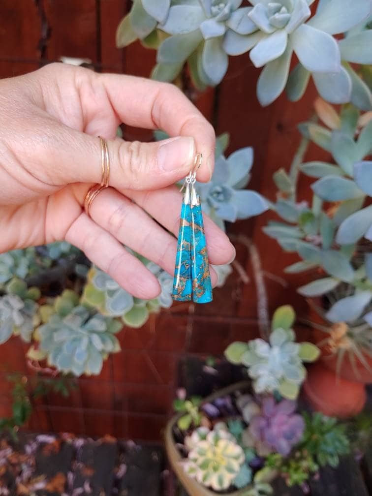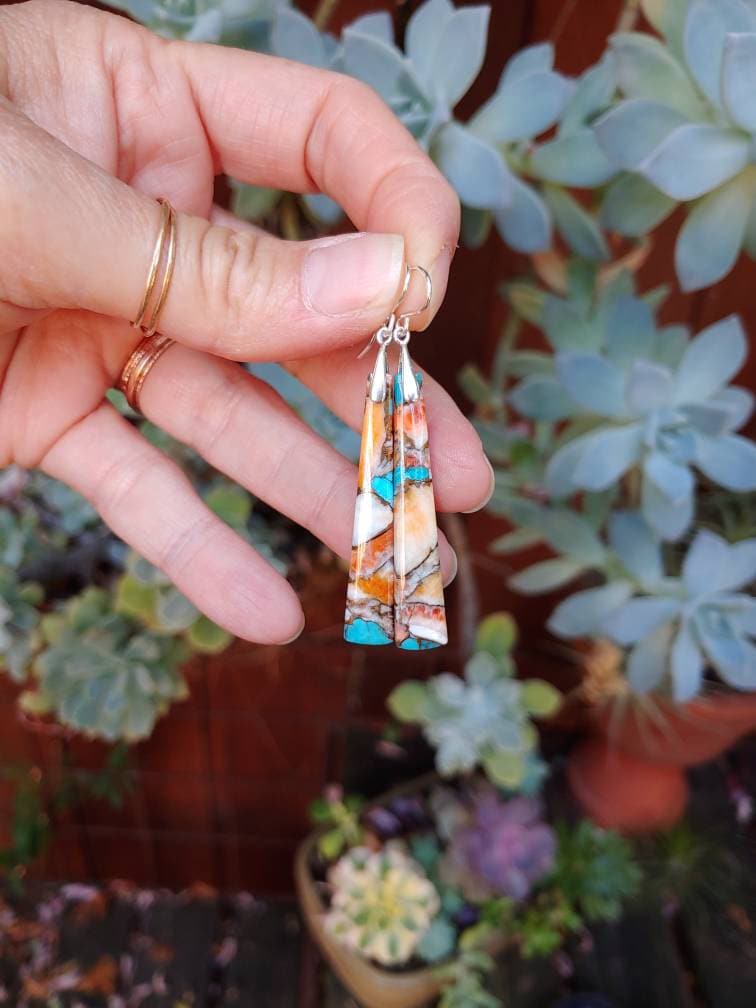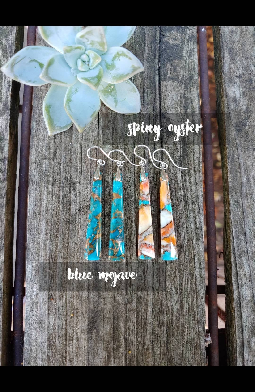 Spiny oyster turquoise earrings and blue mojave turquoise earrings.