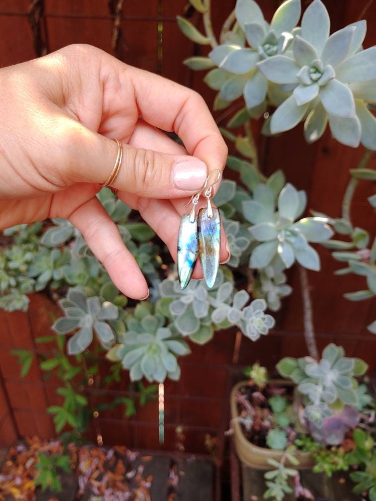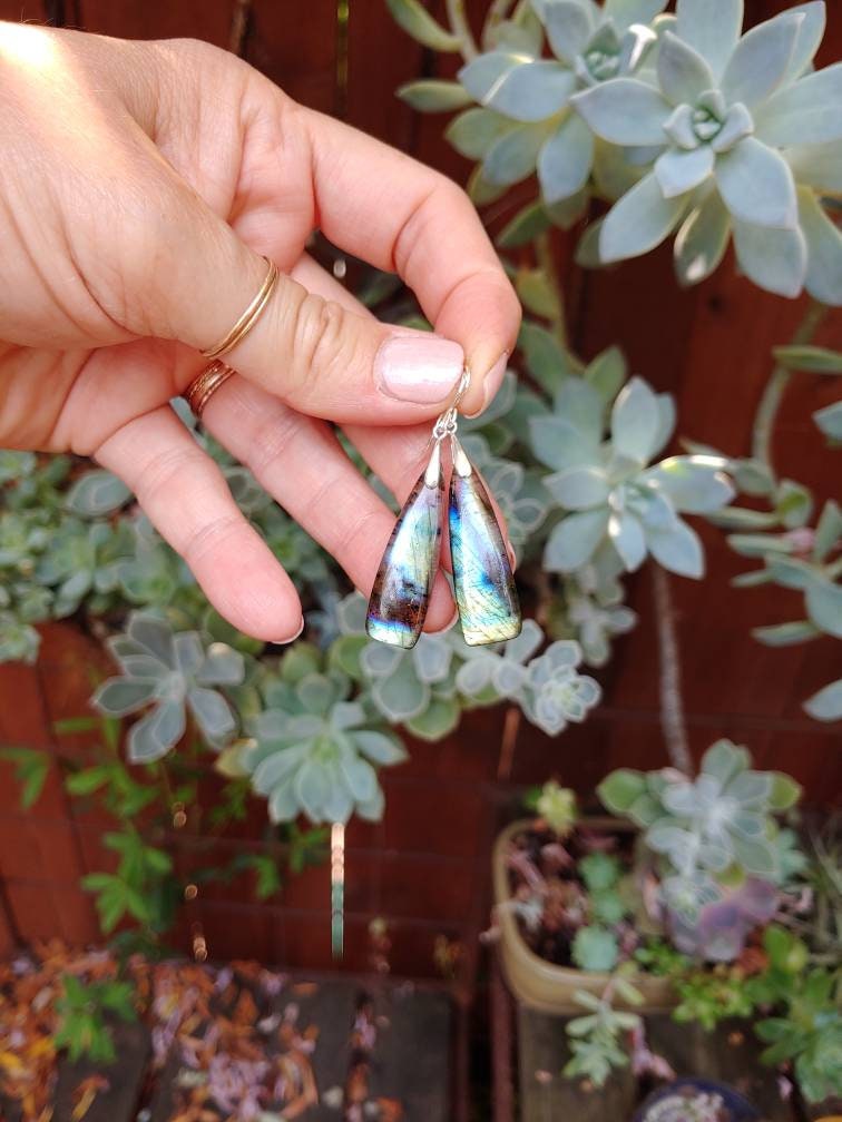 Sterling Silver Labradorite earrings. Vibrant opalescent hues of labradorite is demure yet bold at the same time.