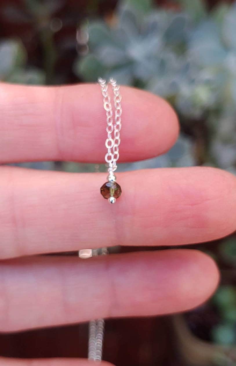 Dainty pendant Moldavite necklace in gold filled, rose gold and Sterling silver. 4x6mm faceted REAL moldavite gemstones hand wired with love.