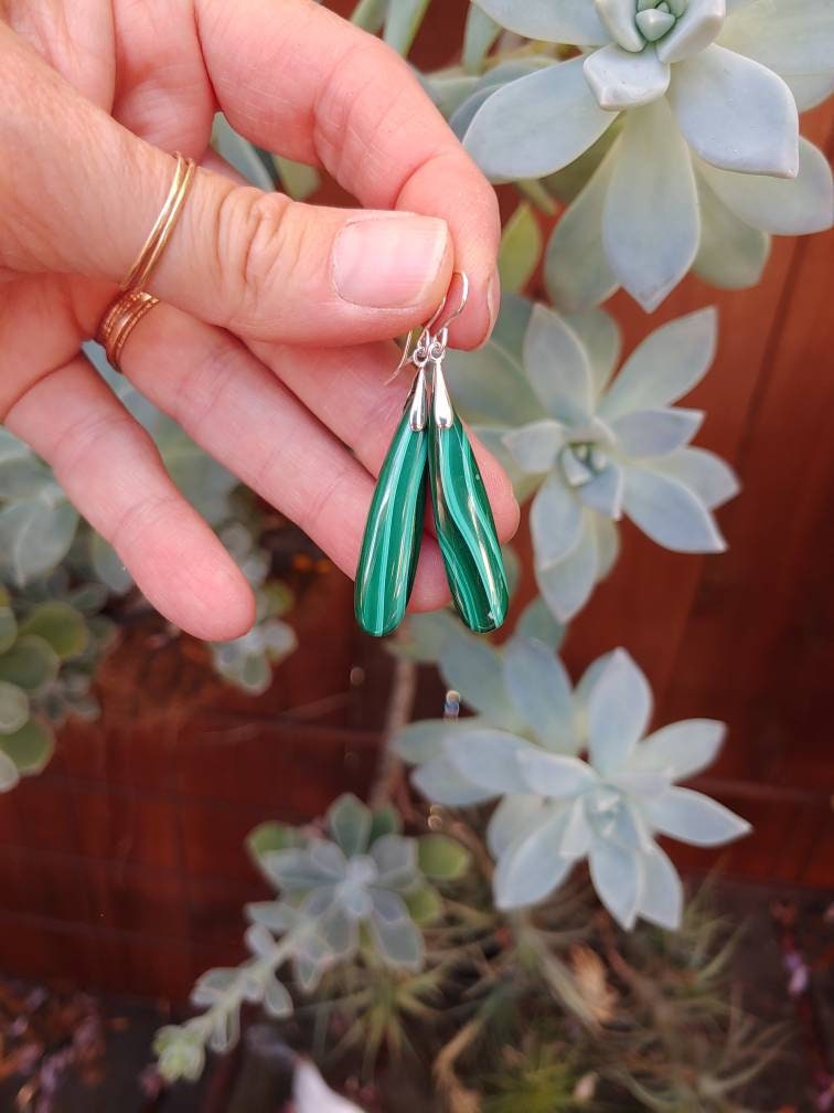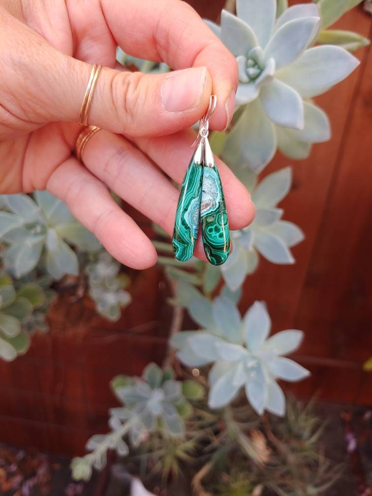 Gorgeous Deep green and subtle blue hues of swirled together in these malachite gems.