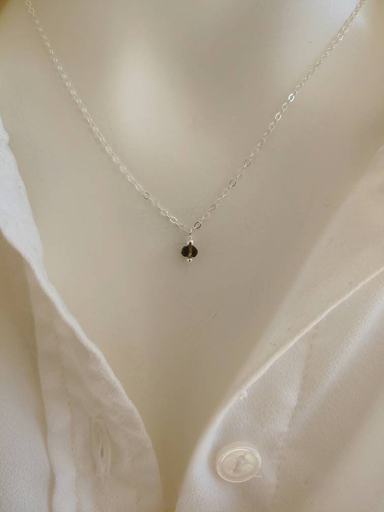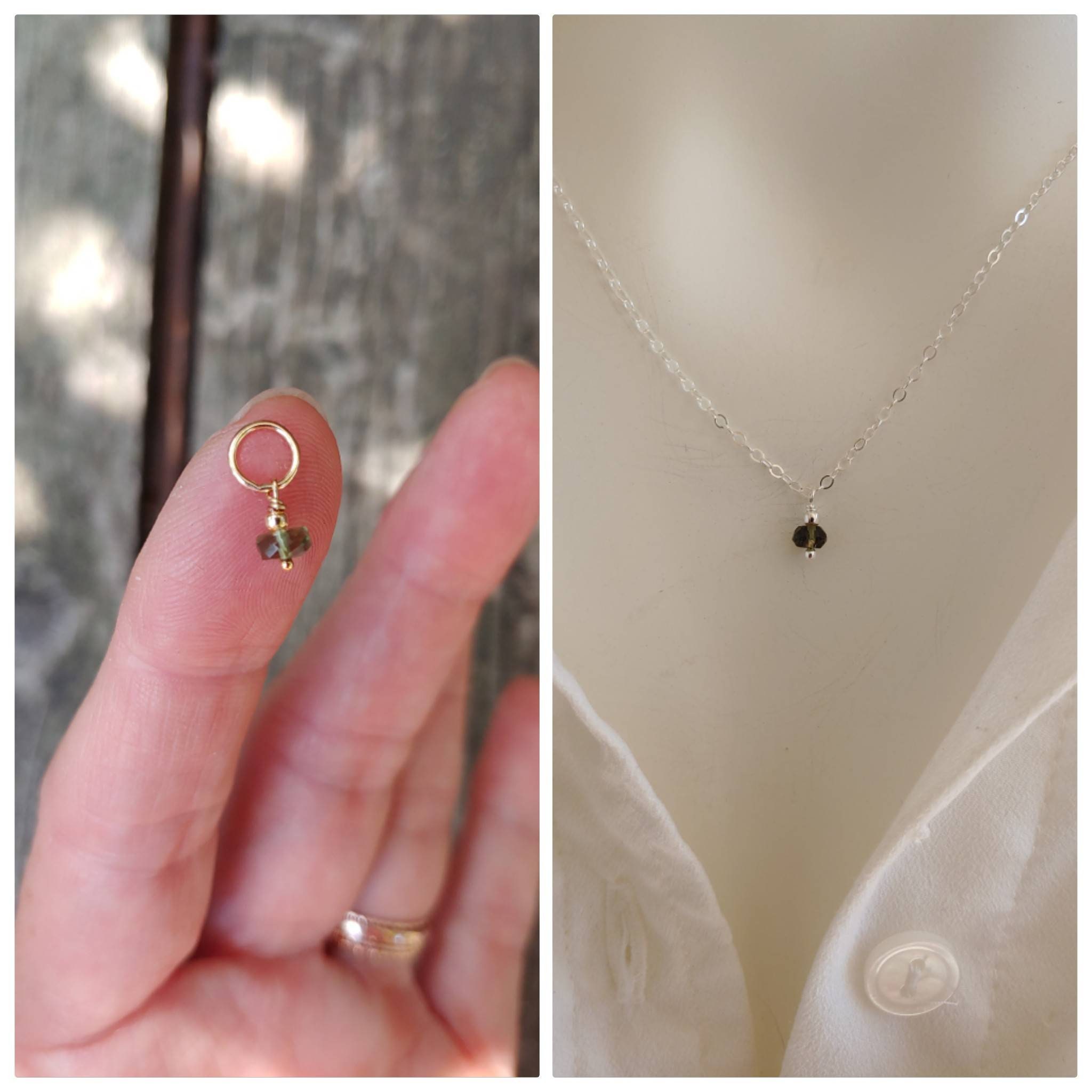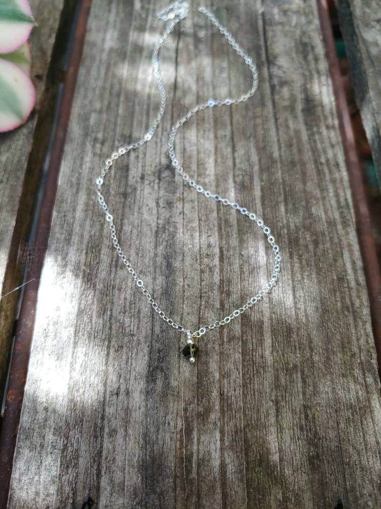Dainty pendant Moldavite necklace in gold filled, rose gold and Sterling silver. 4x6mm faceted REAL moldavite gemstones hand wired with love.