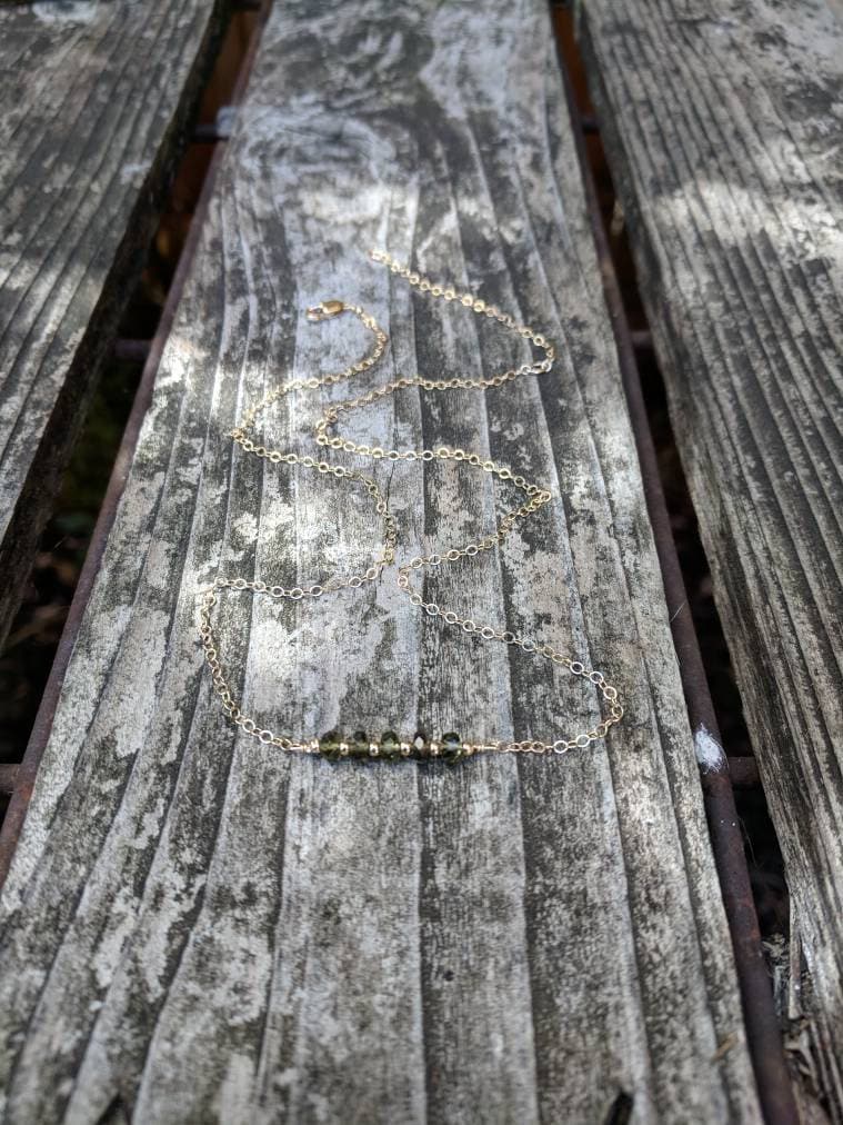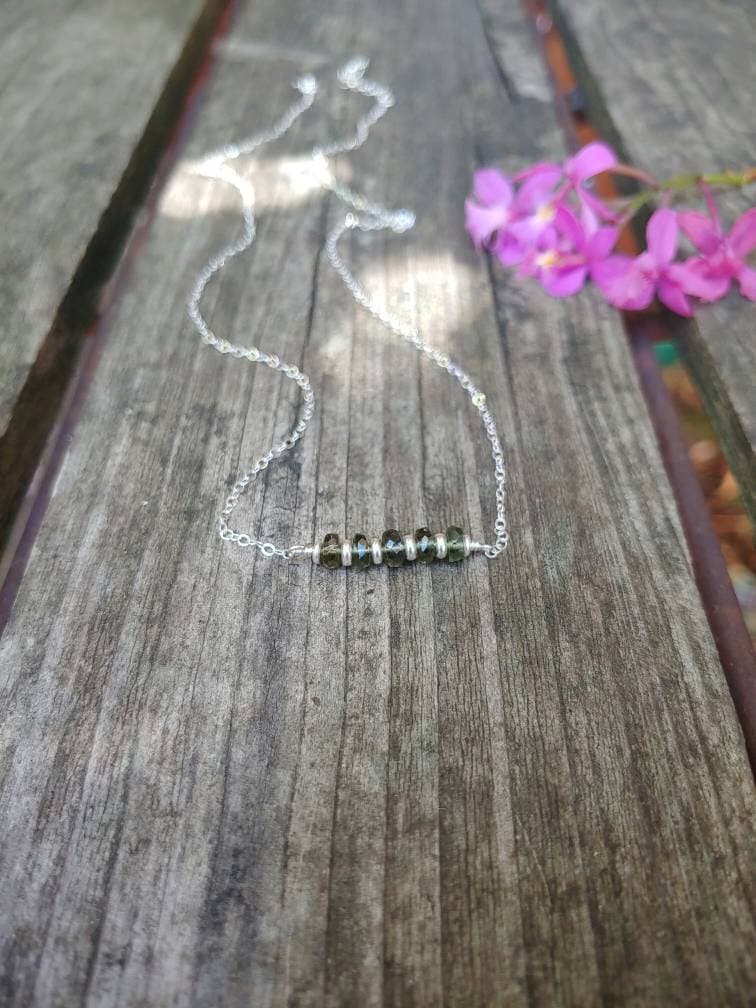 Dainty Moldavite necklace in gold filled, rose gold and Sterling silver. 3x5mm faceted REAL moldavite gemstones hand wired with love.