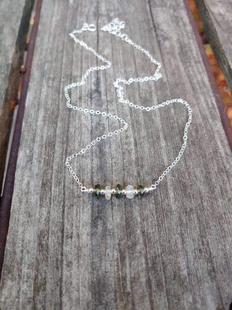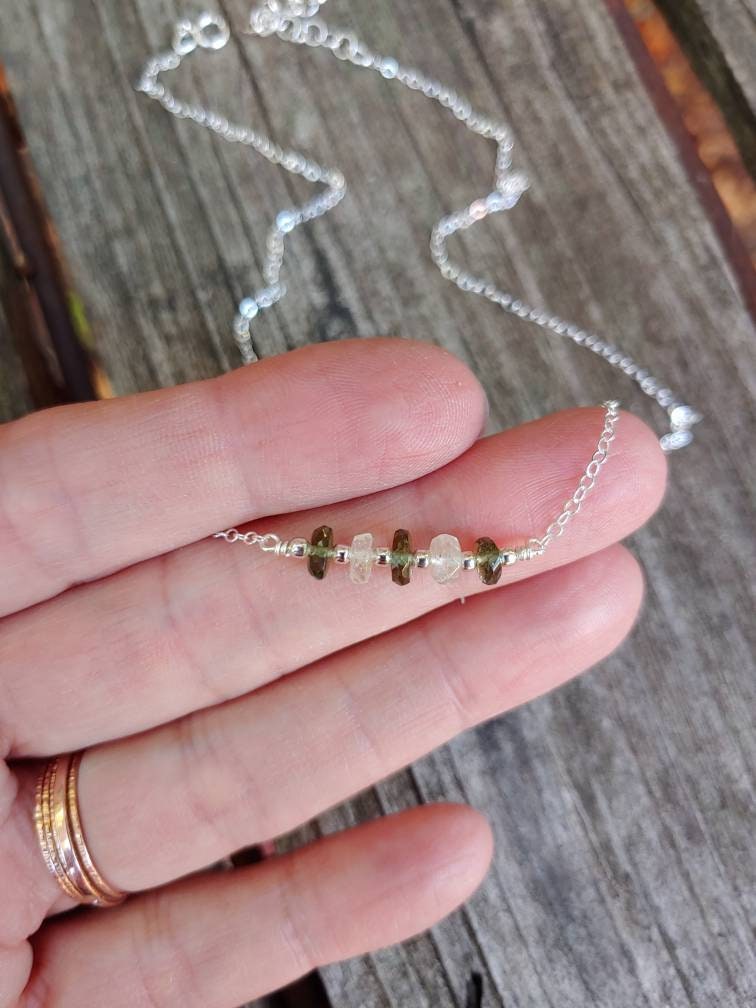 Dainty Moldavite and Libyan desert glass necklace in gold filled, rose gold and Sterling silver. 3x5mm faceted REAL moldavite and real Libyan desert glass gemstones hand wired with love.❤