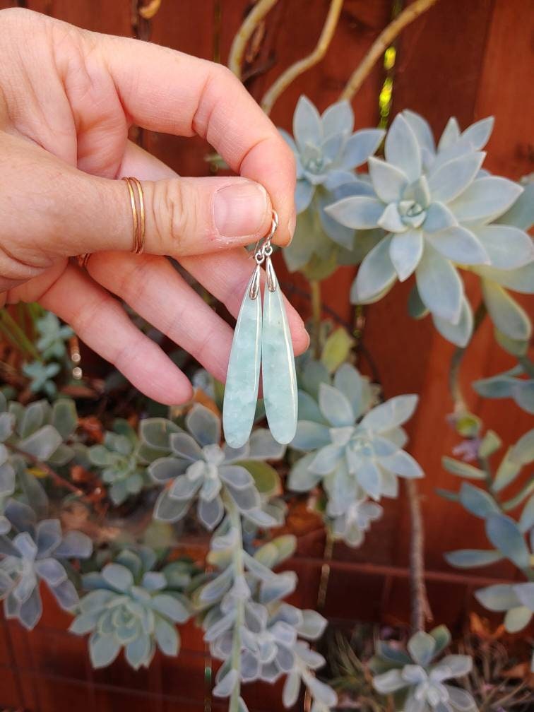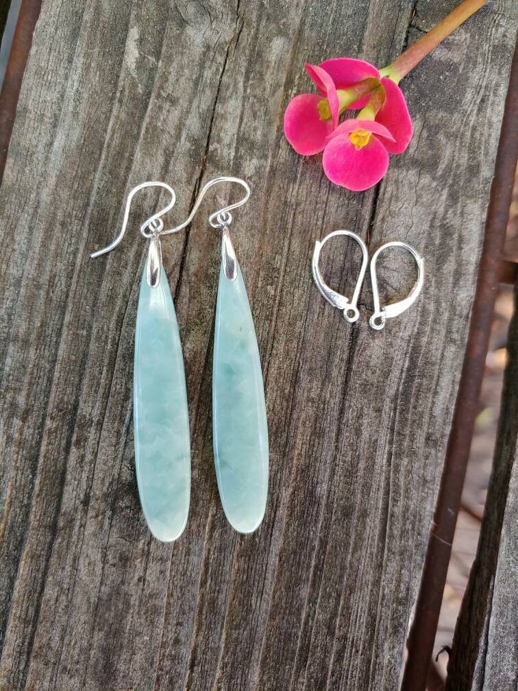 Long teardrop shaped larimar gemstone earrings. Gorgeous baby blue hues!!!