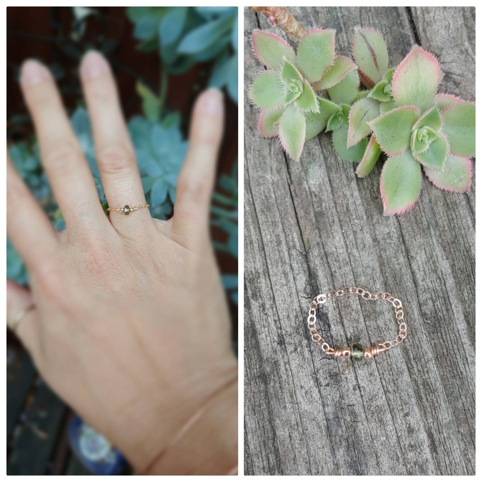 Sweet and dainty Libyan desert glass tektite ring. Available in gold, rose gold, or Sterling silver. Genuine Libyan desert glass gemstone.