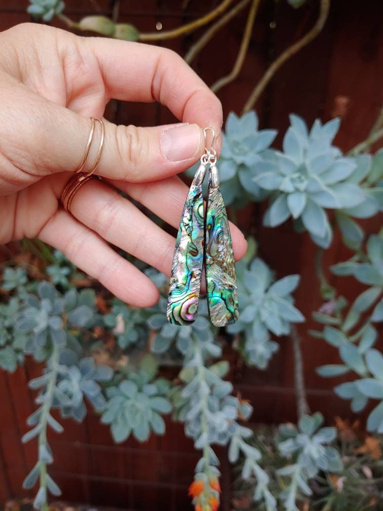 Gorgeous rainbow opalescent abalone veneer on acrylic. A little bit of fun in these as these can be dressed up or with your favorite jeans and sandals❤