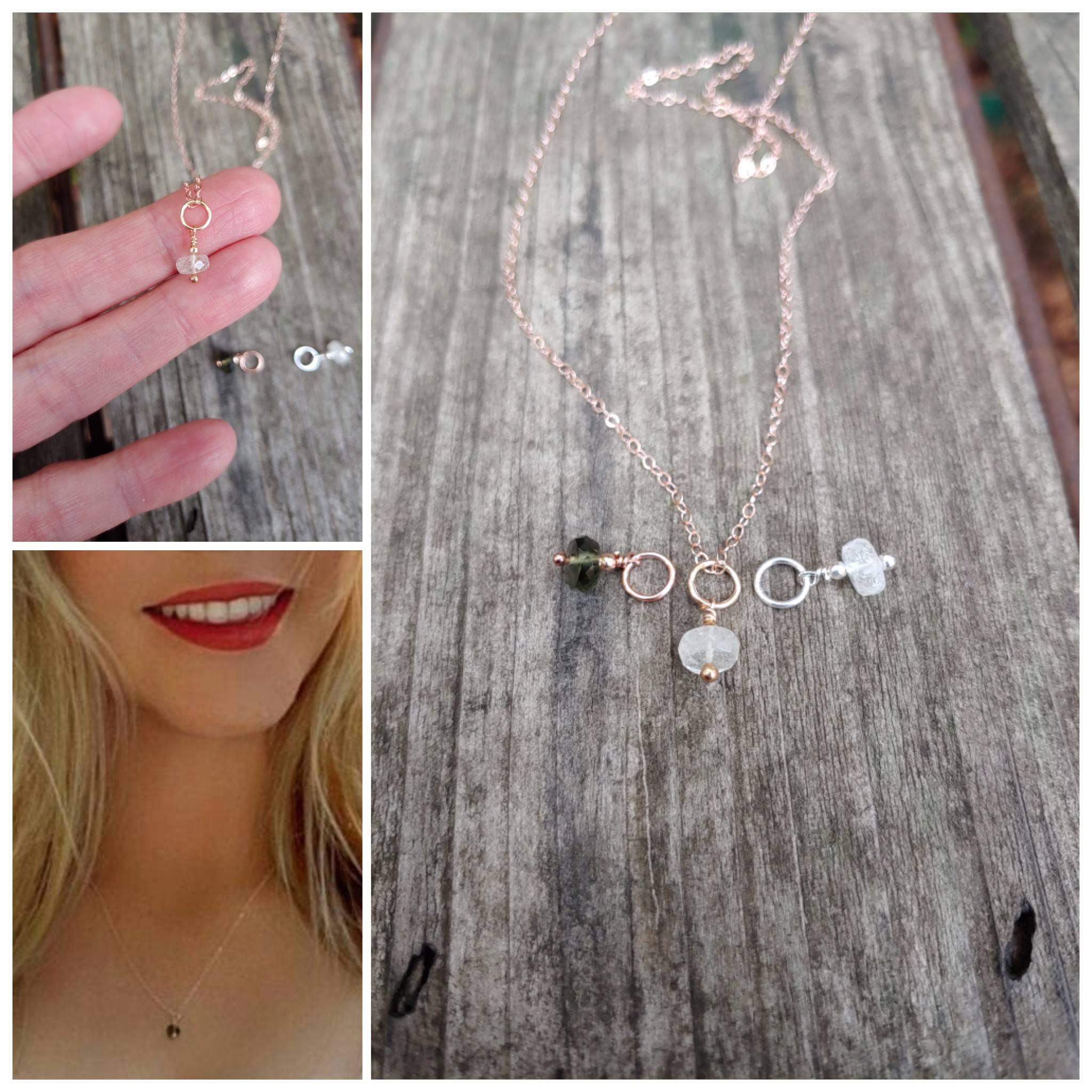 Dainty Libyan desert glass pendant necklace in gold filled, rose gold and Sterling silver. 3x5mm faceted REAL Libyan desert glass gemstones hand wired with love.❤