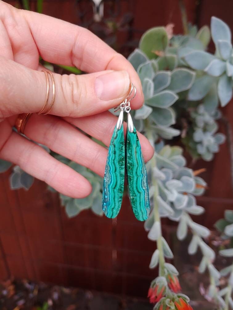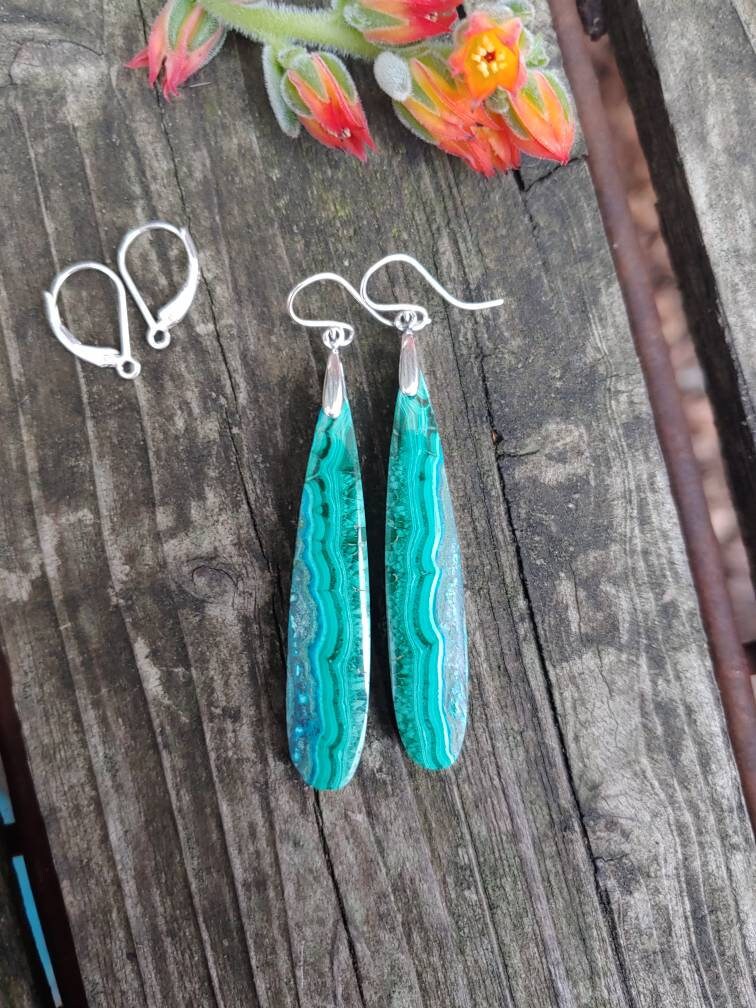 Gorgeous vibrant green and hints of blue hues swirled together in these gemstone earrings